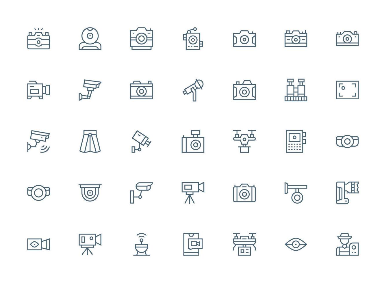 Regular Clean Line Icons from Camera Set with 35 Vectors All-Purpose Icon Design Pack Free Vector