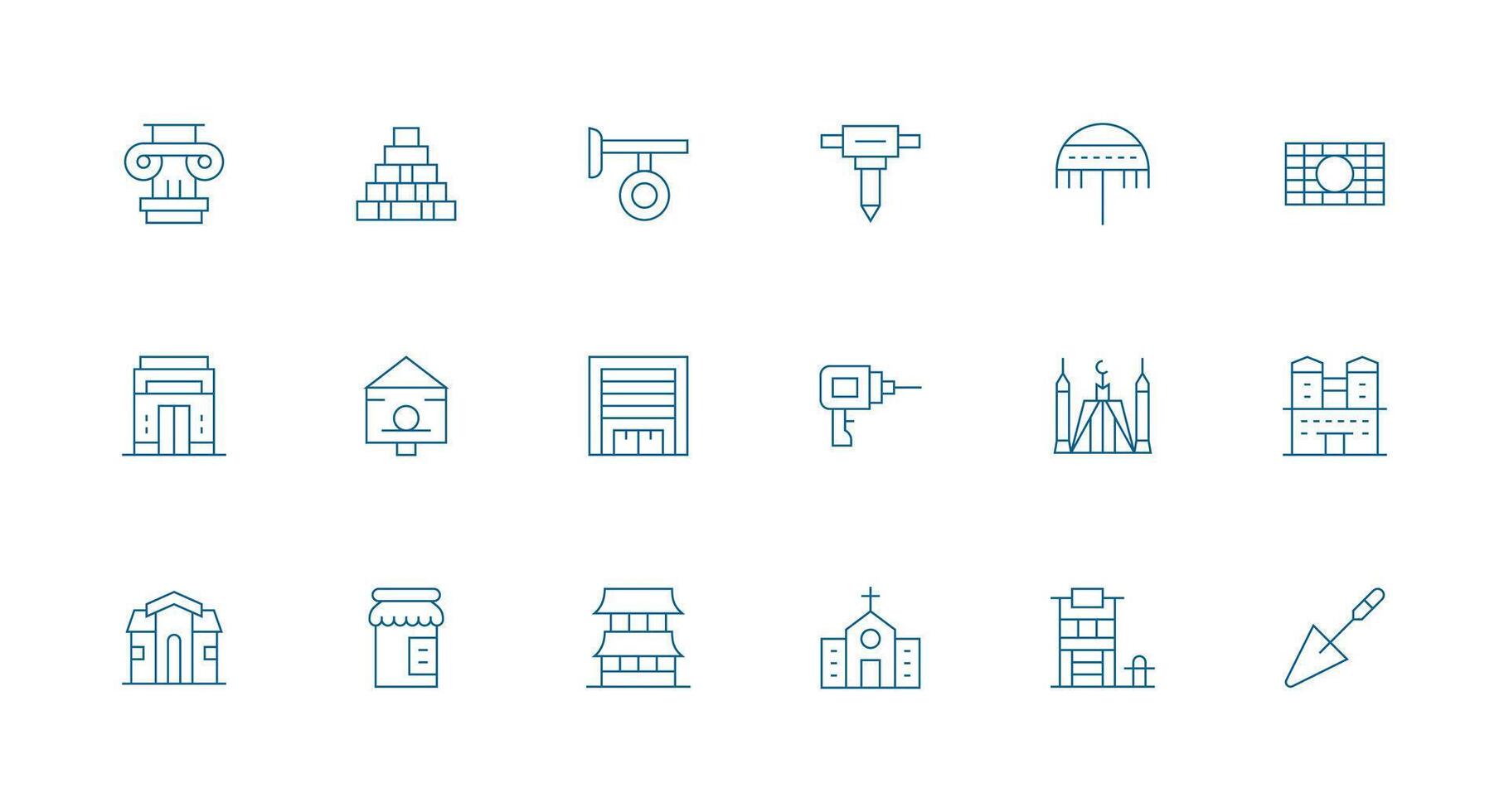 Building Set with 18 Minimal Line Icons Simplified Icon Pack for Visual Tools Free Vector