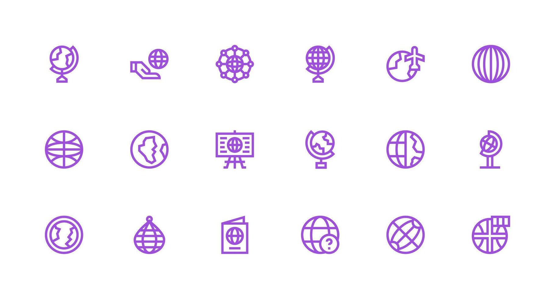 Globe Design Icons featuring 18 in Strong Stroke Line Style UI Icon Set Free Vector