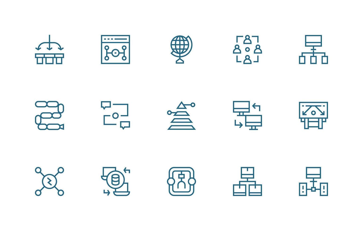 15 Icons for Data Flow in Regular Line Format Professional Icon Pack for Development Work vector