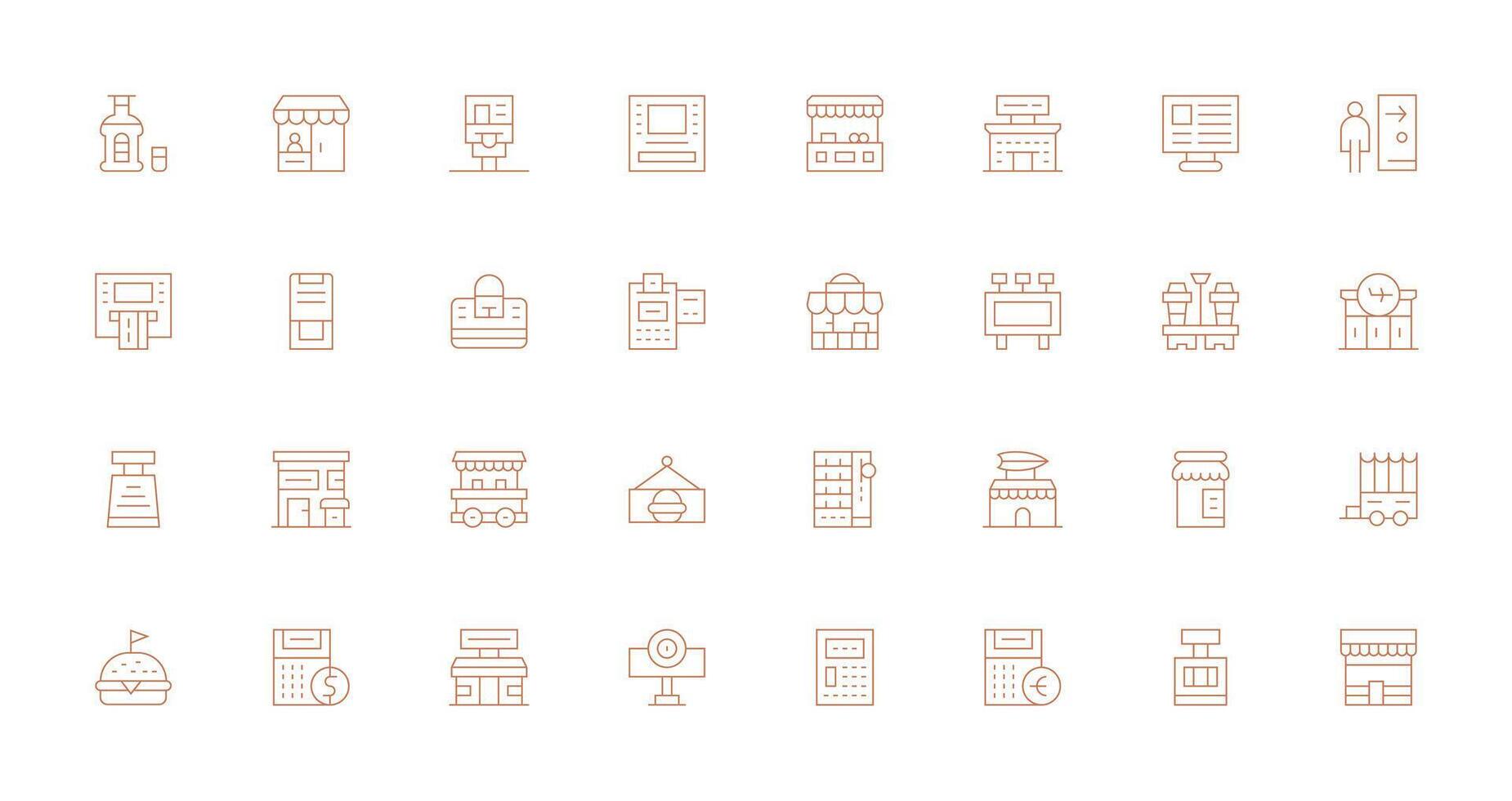 Kiosk Design Icons featuring 32 in Thin Line Style Scalable Icons for All Themes vector