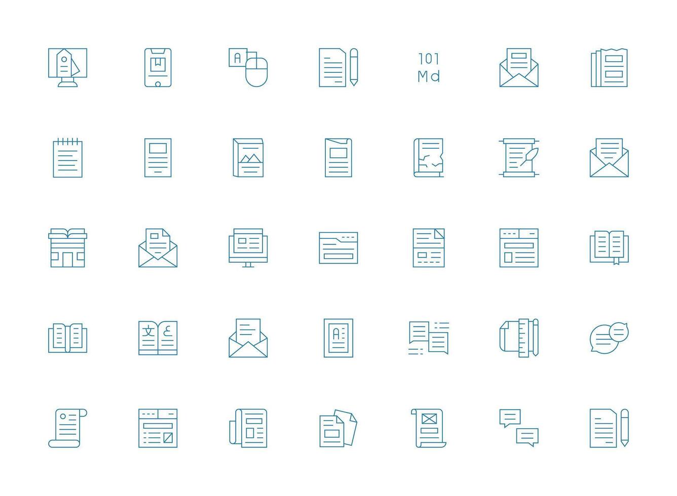 35 Light Line Icons for Text Graphics Icon Set for Web Free Vector