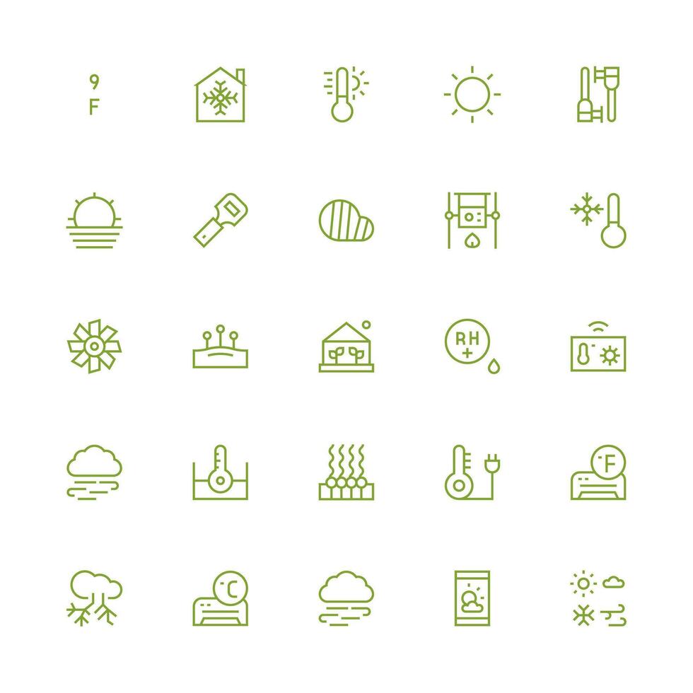 Medium Stroke Outline Style Temperature Icons with 25 Vectors Minimal Icon Set for Interface Projects