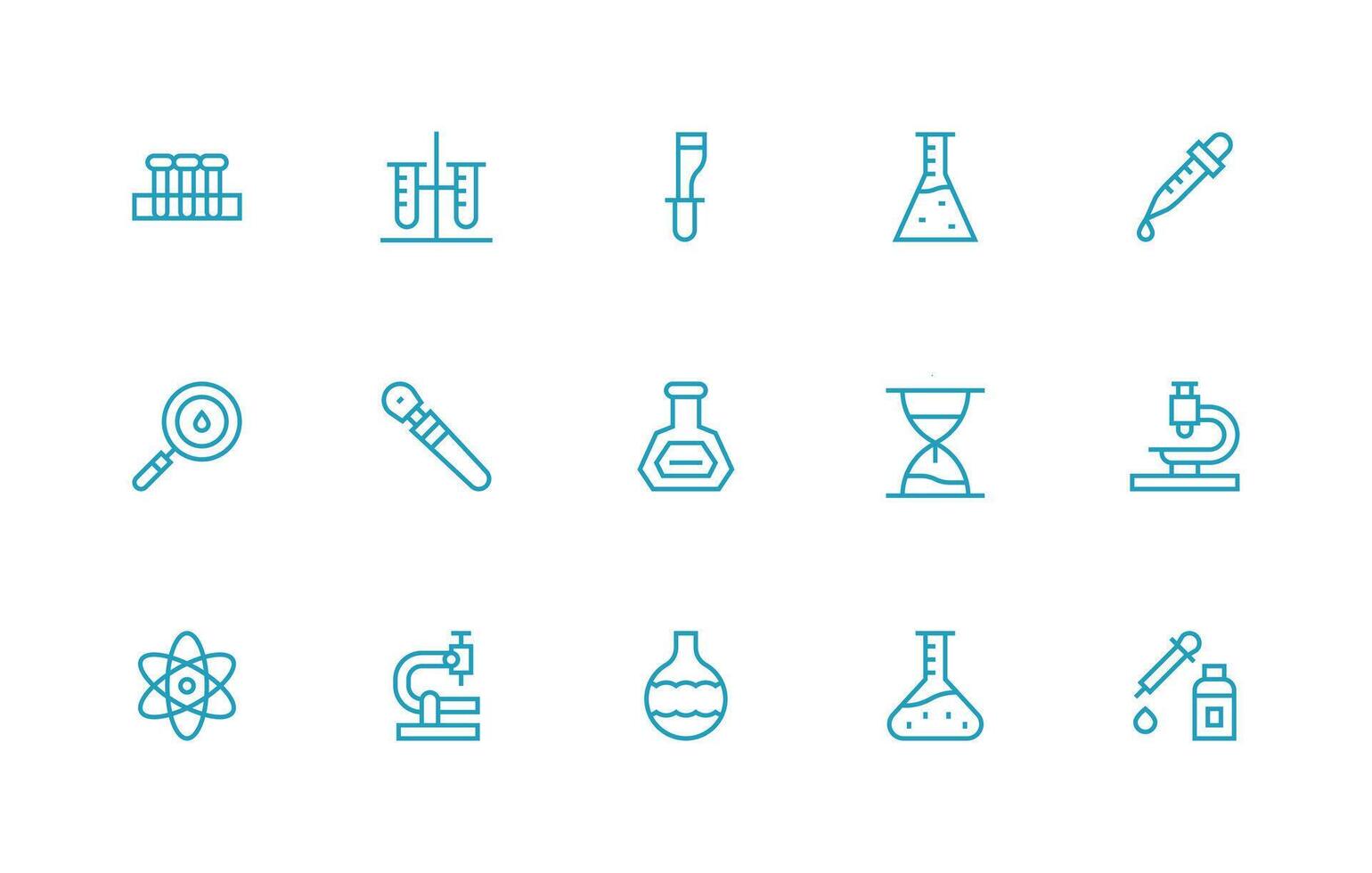 Research Lab Icon Set with 15 Regular Line Graphics UI Icon Set vector