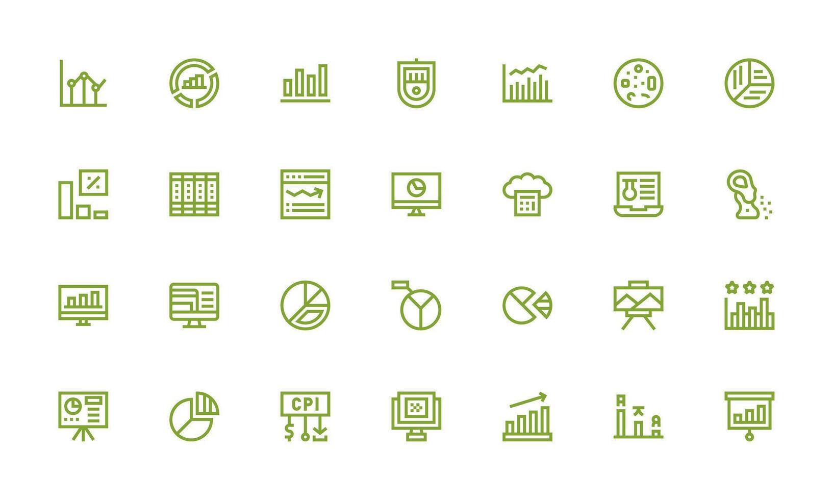 Data Visualization Design Icons featuring 28 in Bold Line Style Simplified Icon Pack for Visual Tools Free Vector