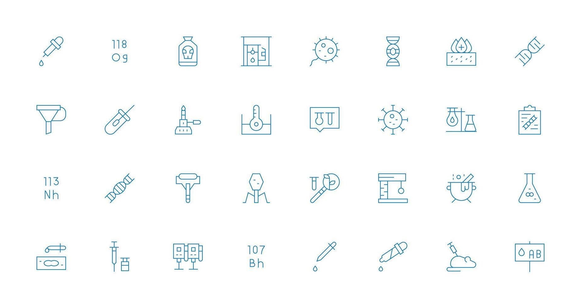 32 Thin Line Style Icons from Laboratory Collection Fully Editable Icon Set for Web vector