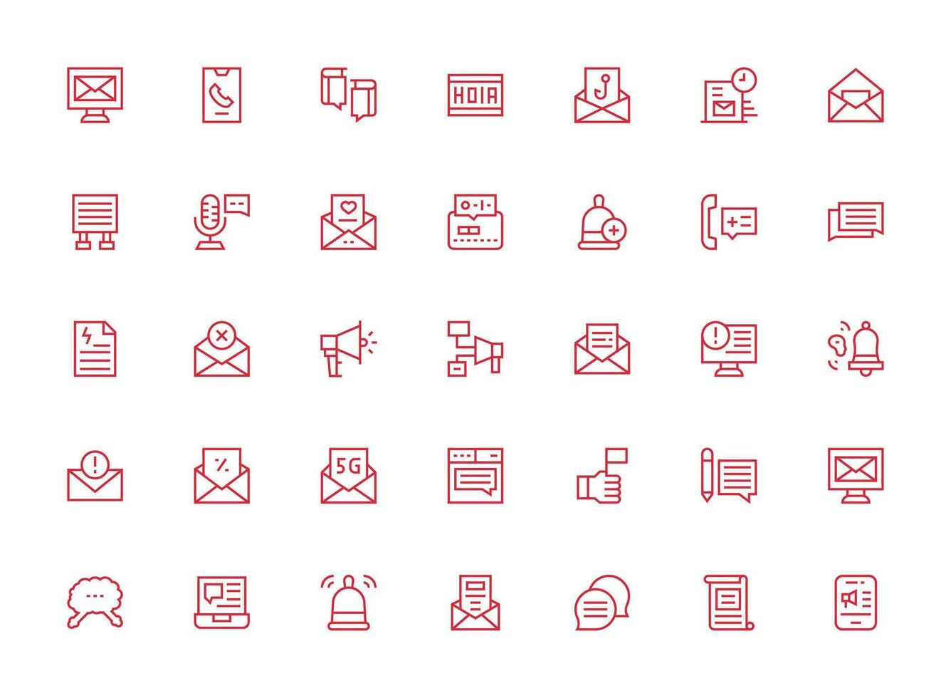 Message Set with 35 Regular Clean Line Icons Compact Icon Set Free Vector