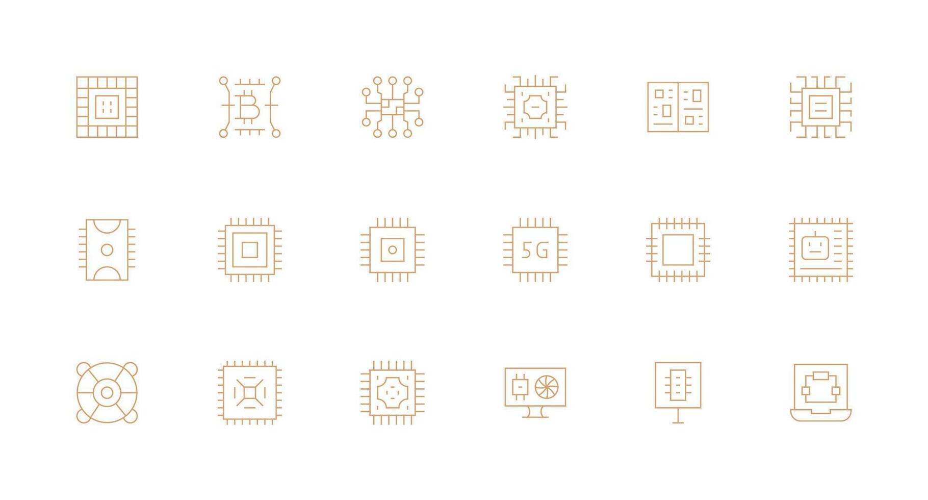 Processor Visual Pack containing 18 Minimal Line Icons Web and App Icon Pack Collection Free Vector