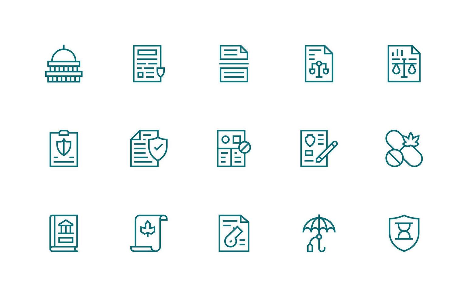 Policy Icon Set with 15 Regular Line Graphics Light Icon Series vector