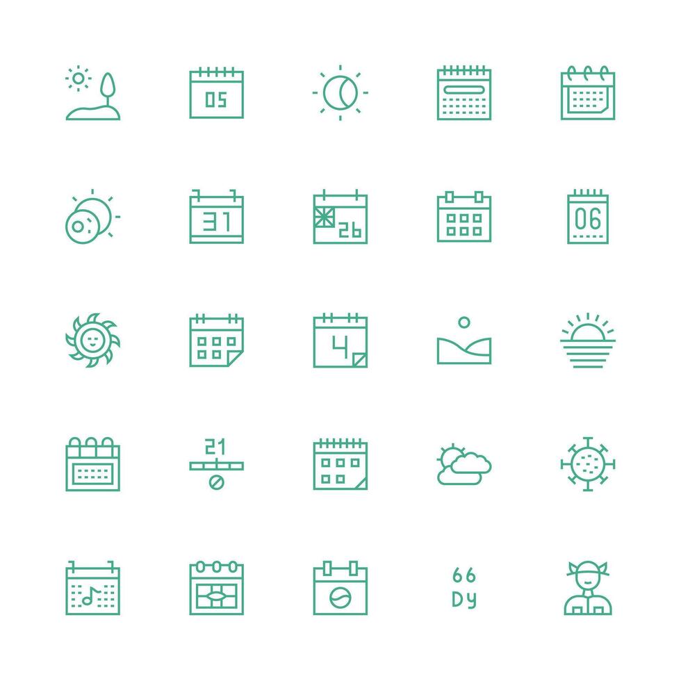 Day featuring 25 Icons in Medium Stroke Outline Design Fully Editable Icon Set for Web vector