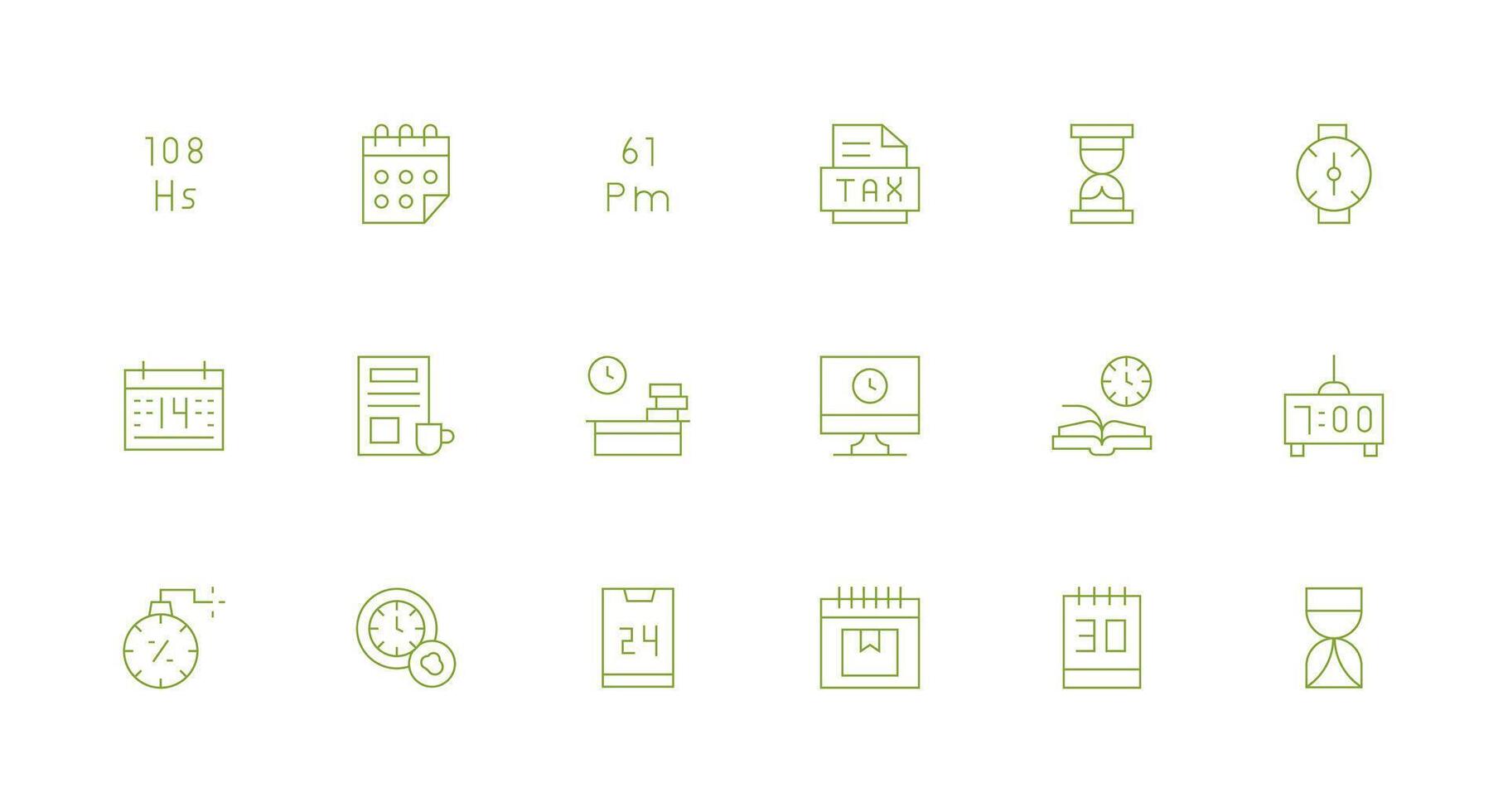 Deadline Design Icons featuring 18 in Minimal Line Style Balanced Icon Set for Functional Design vector