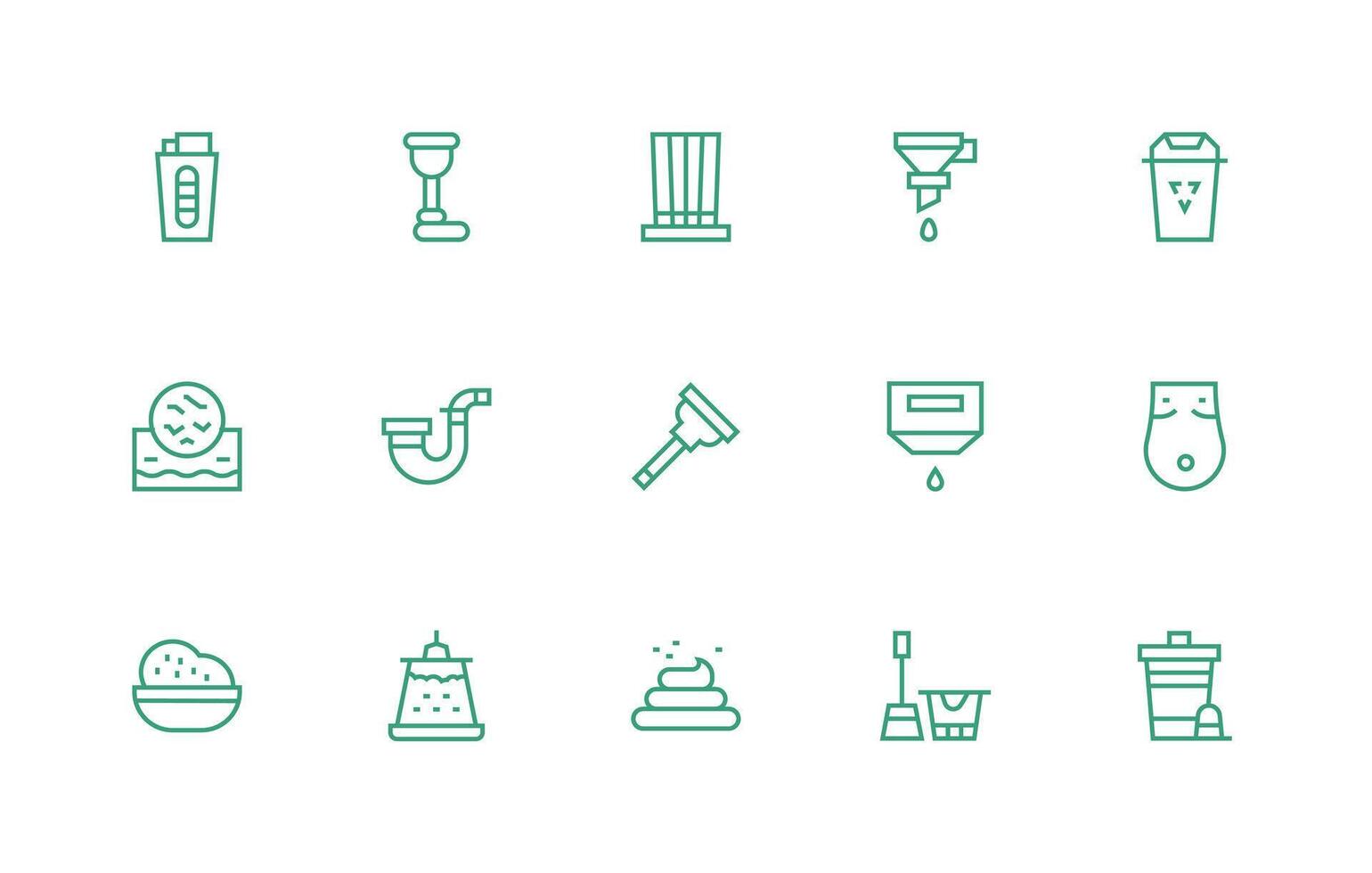 Regular Line Style Waste Icons with 15 Vectors Fully Editable Icon Set for Web
