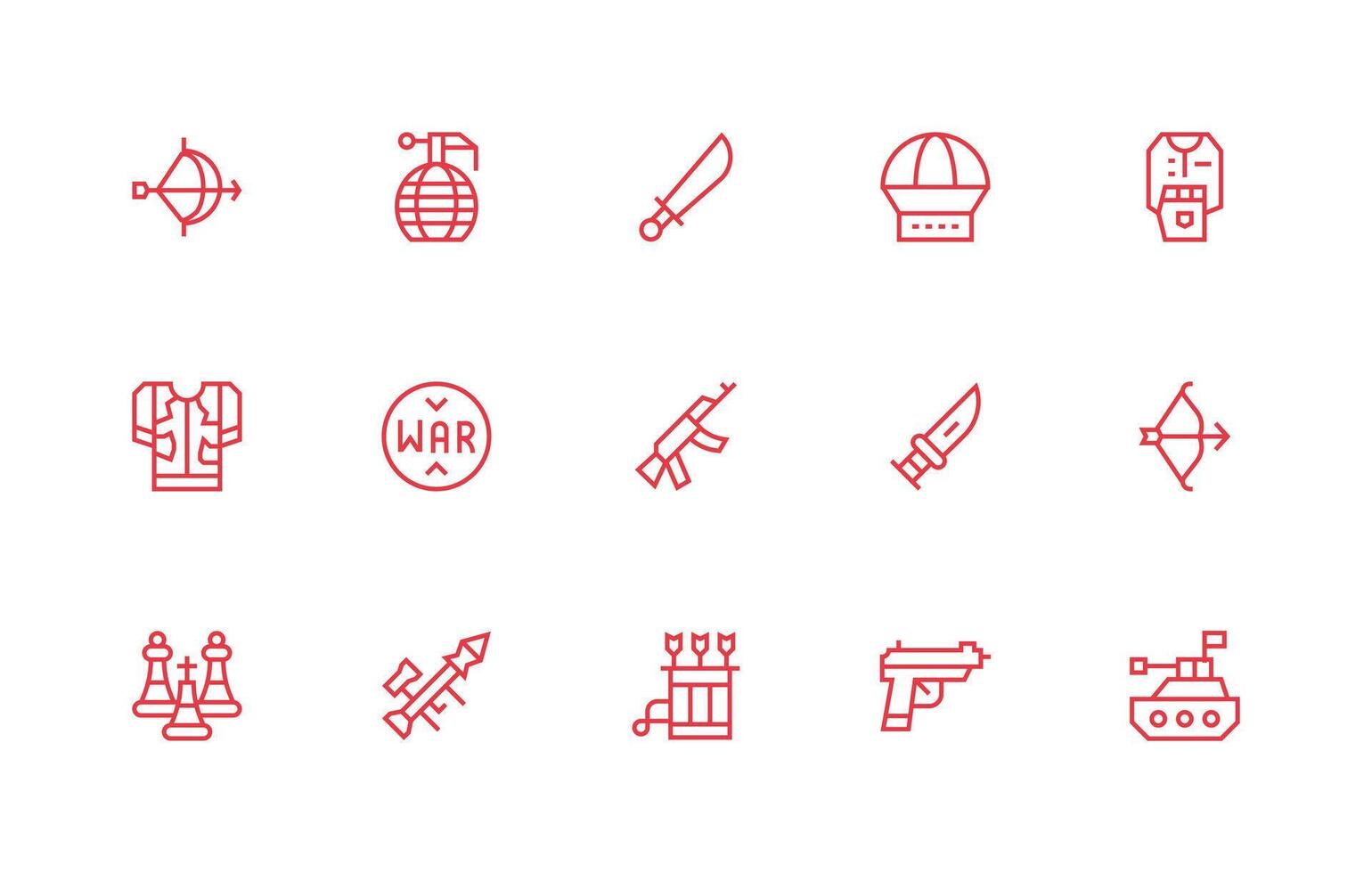 Tactical Icon Set with 15 Regular Line Graphics Reliable Icons for All Interfaces vector