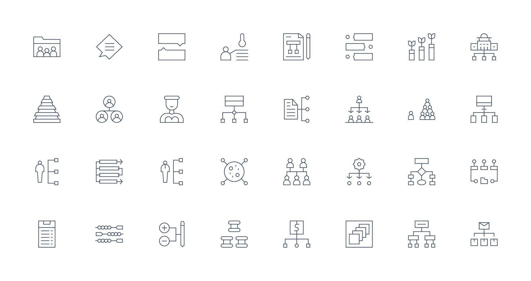 Hierarchy Visual Pack containing 32 Thin Line Icons Customizable Icon Series for Mobile Screens vector