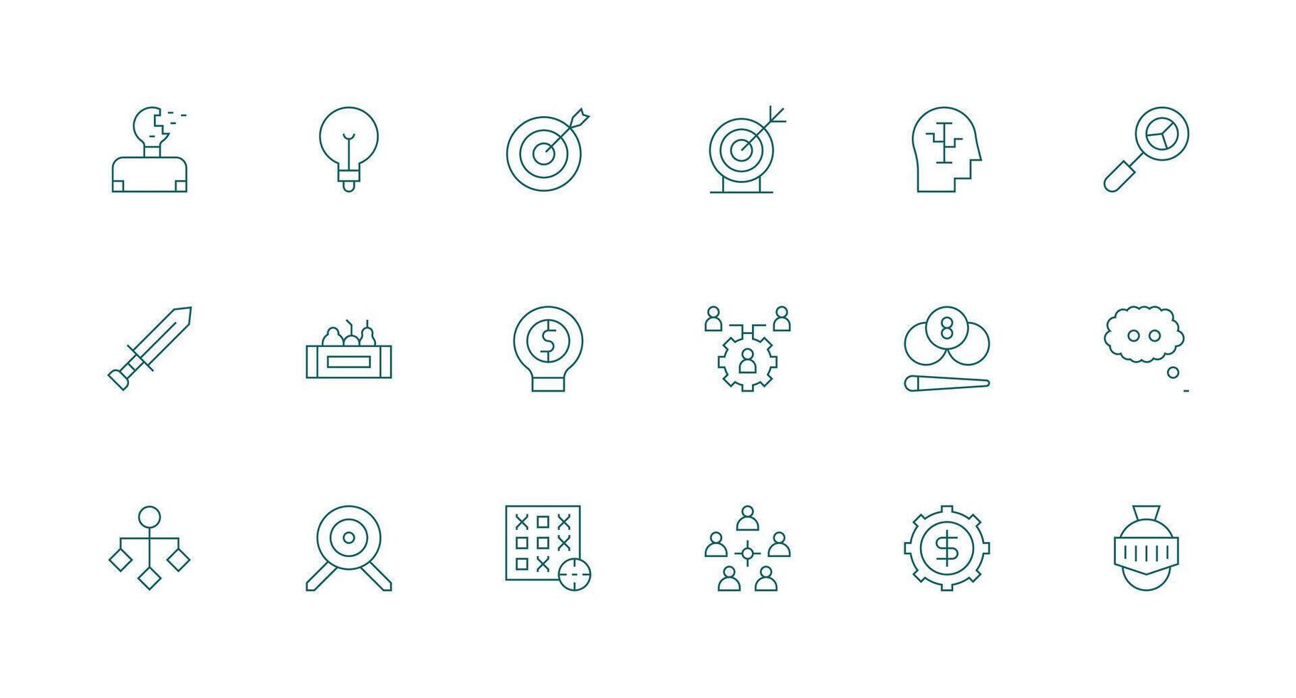 Strategy Visual Pack containing 18 Minimal Line Icons Scalable Icons for Cross-Platform Interfaces Free Vector