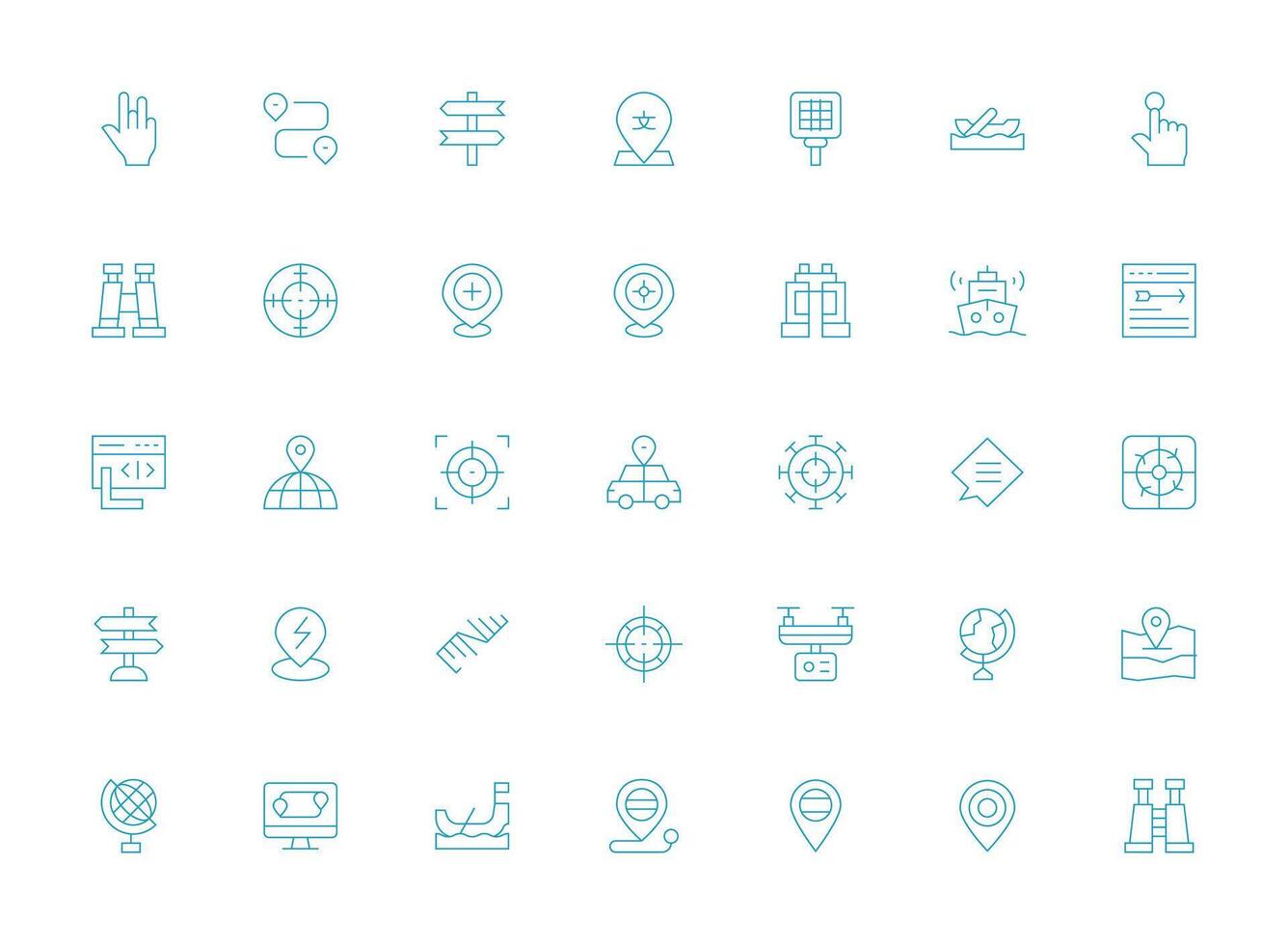 Navigation Icon Set with 35 Light Line Graphics Balanced Icon Set for Functional Design Free Vector
