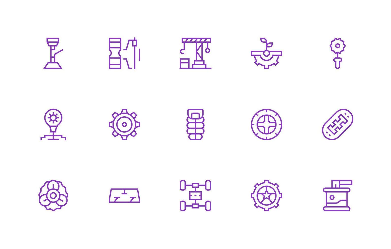 Mechanism Icon Set with 15 Regular Line Graphics Neutral Style Icons for Any Project vector