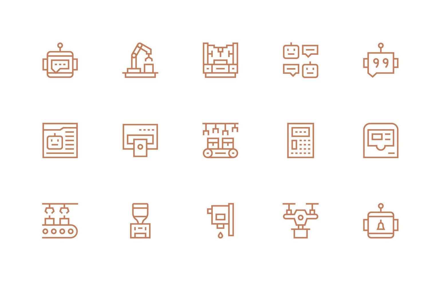 Automated Visual Pack containing 15 Regular Line Icons Reusable Icon Set Free Vector