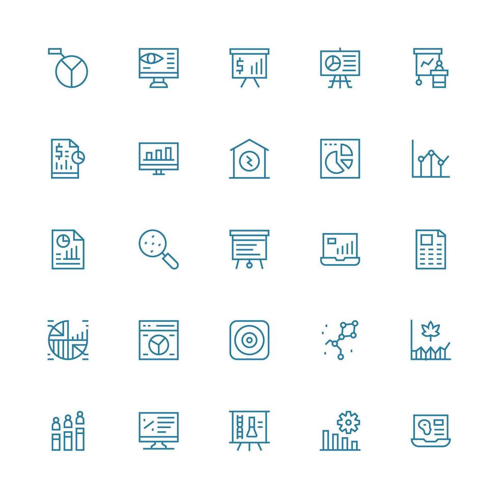 Graph Icon Set with 25 Medium Stroke Outline Graphics Organized Pack for Project Assets Free Vector
