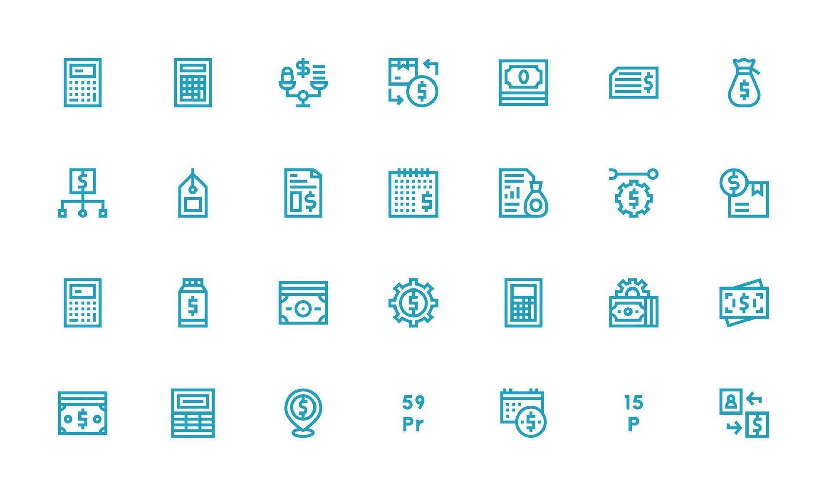 28 Bold Line Icons for Cost Graphics Clean Icon Collection for Web Use Free Vector