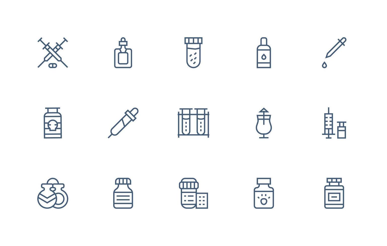 Vial Icon Set with 15 Regular Line Graphics Multi-Purpose Icon Pack for Templates vector
