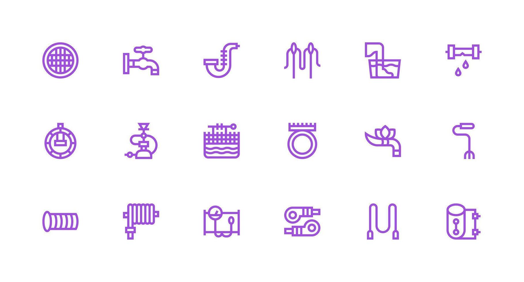 18 Strong Stroke Line Icons for Pipe Graphics Clean Icon Collection for Web Use Free Vector
