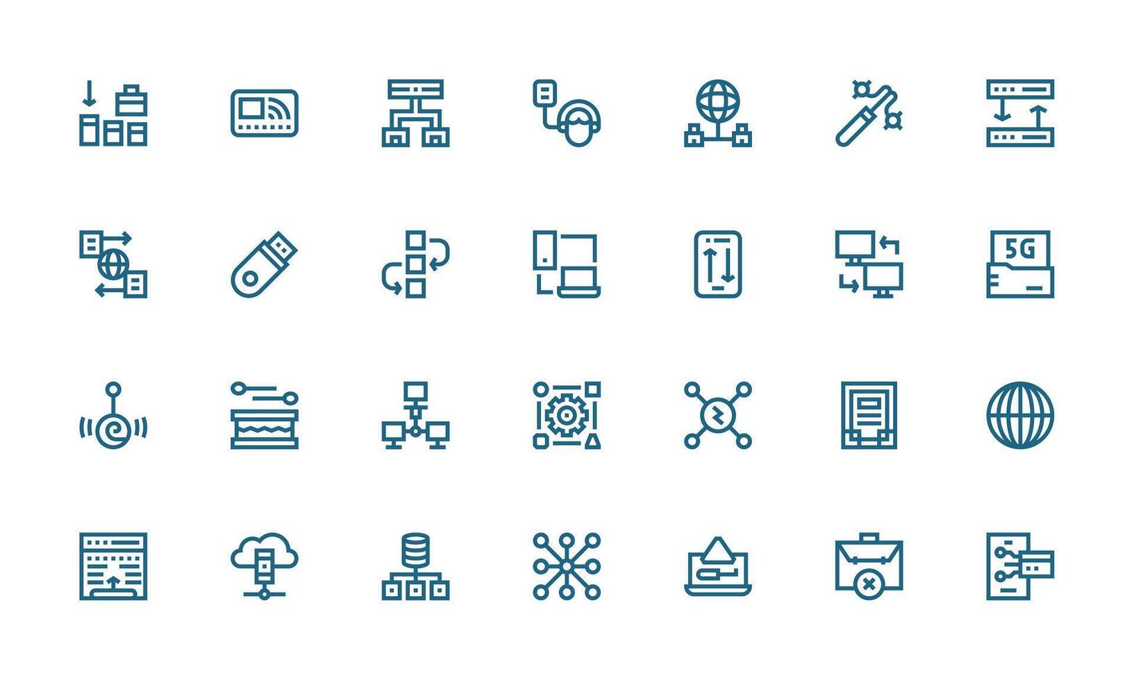 Data Transfer Visual Pack containing 28 Bold Line Icons Neatly Designed Icons for Web Platforms Free Vector