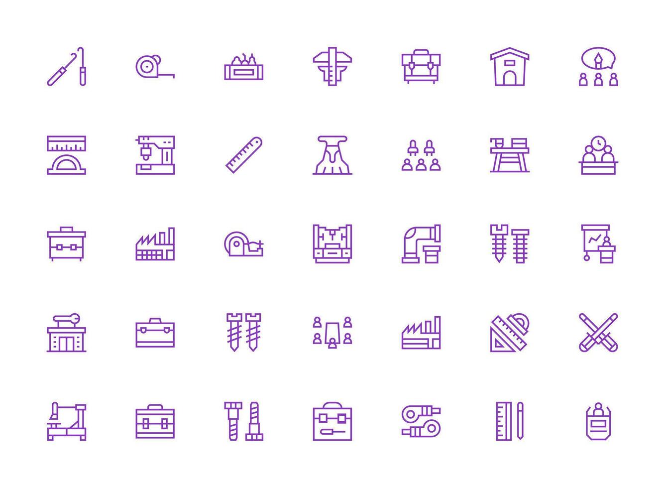 Workshop Icon Set with 35 Regular Clean Line Graphics Detailed Icon Collection for Design Systems Free Vector