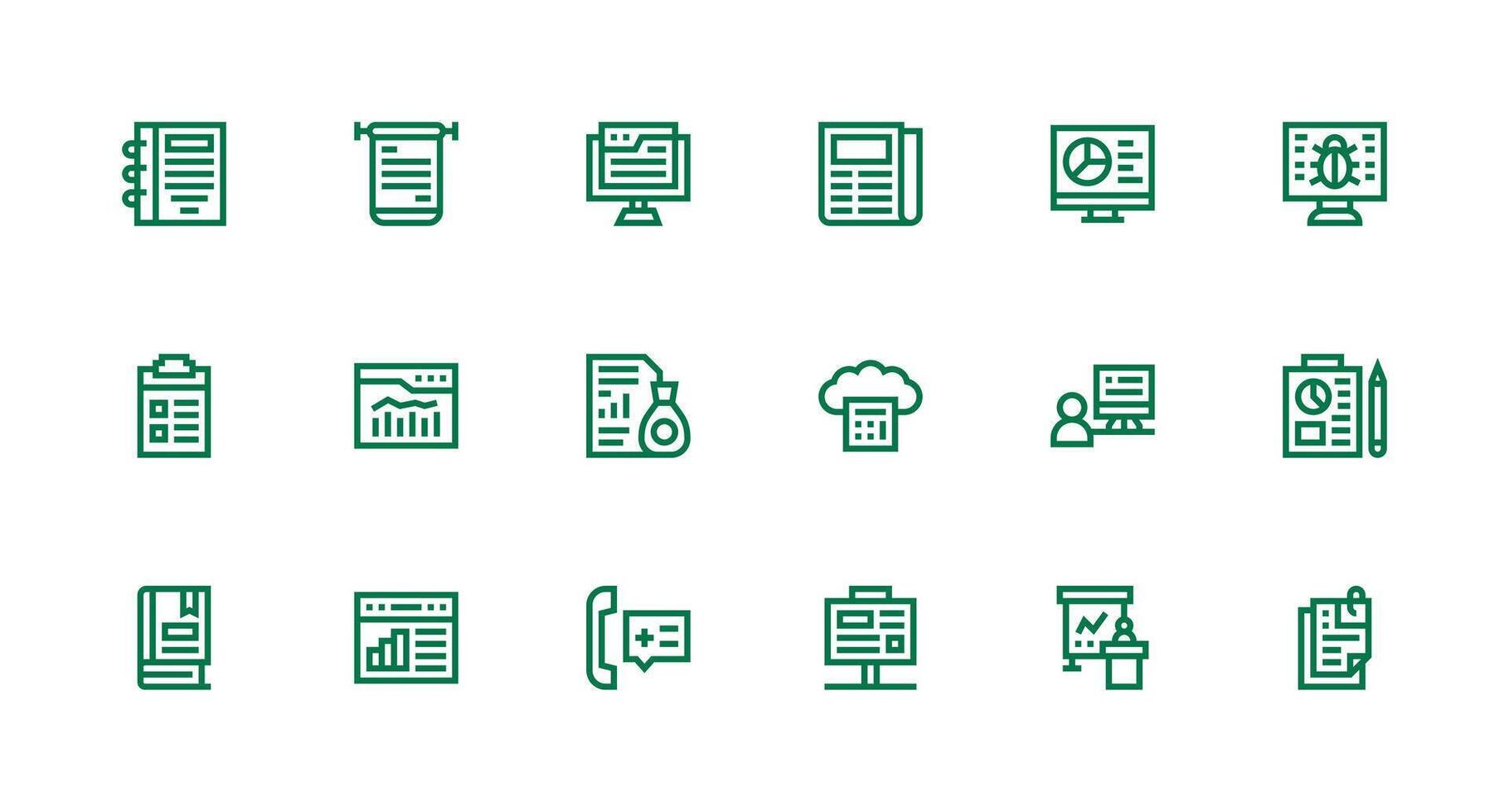 Strong Stroke Line Icons from Report Set with 18 Vectors Quick Access Icons for UI Development Free Vector