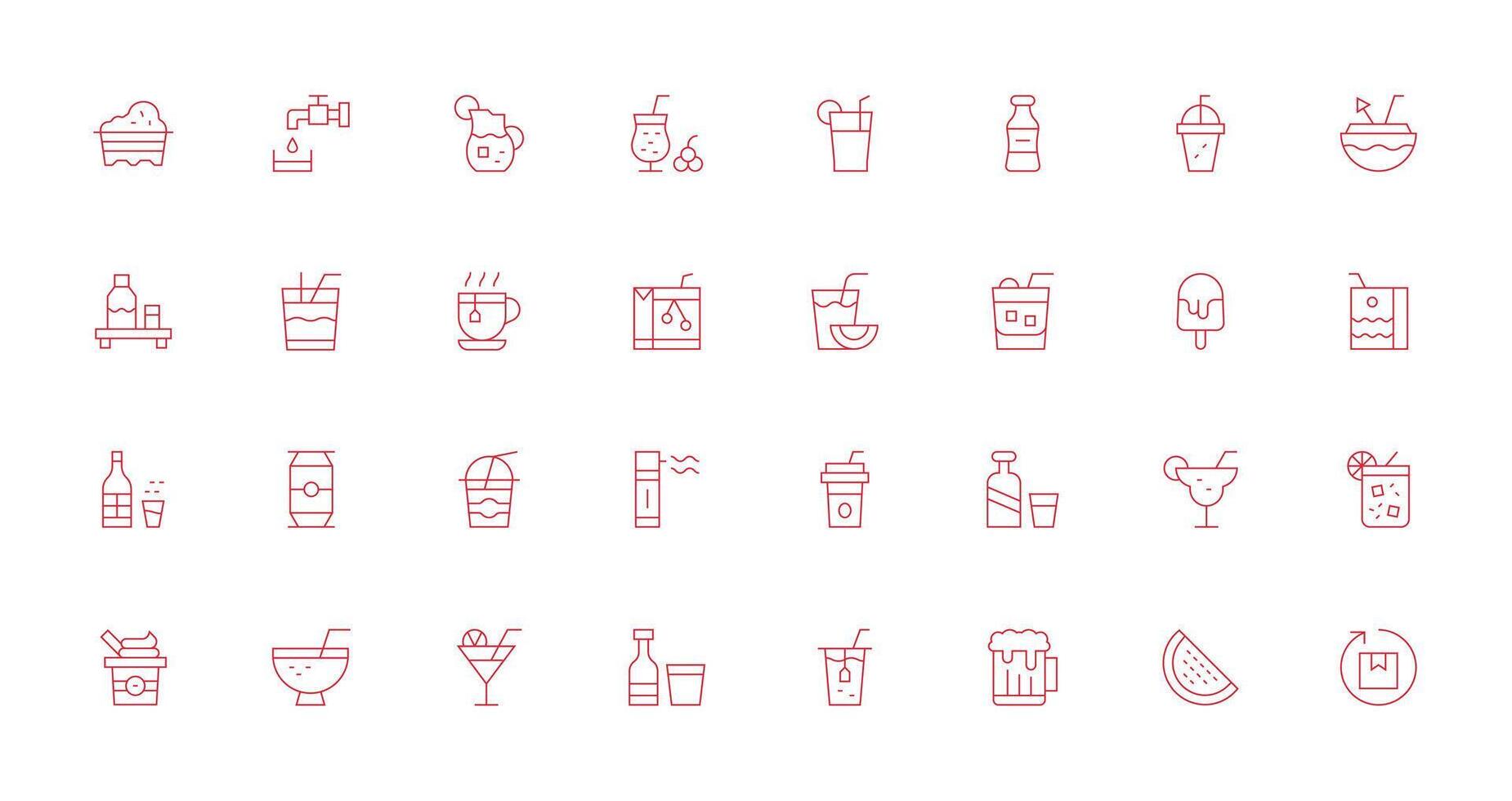 32 Thin Line Vectors for Refreshment Theme Essential Icons for Rapid UI Building