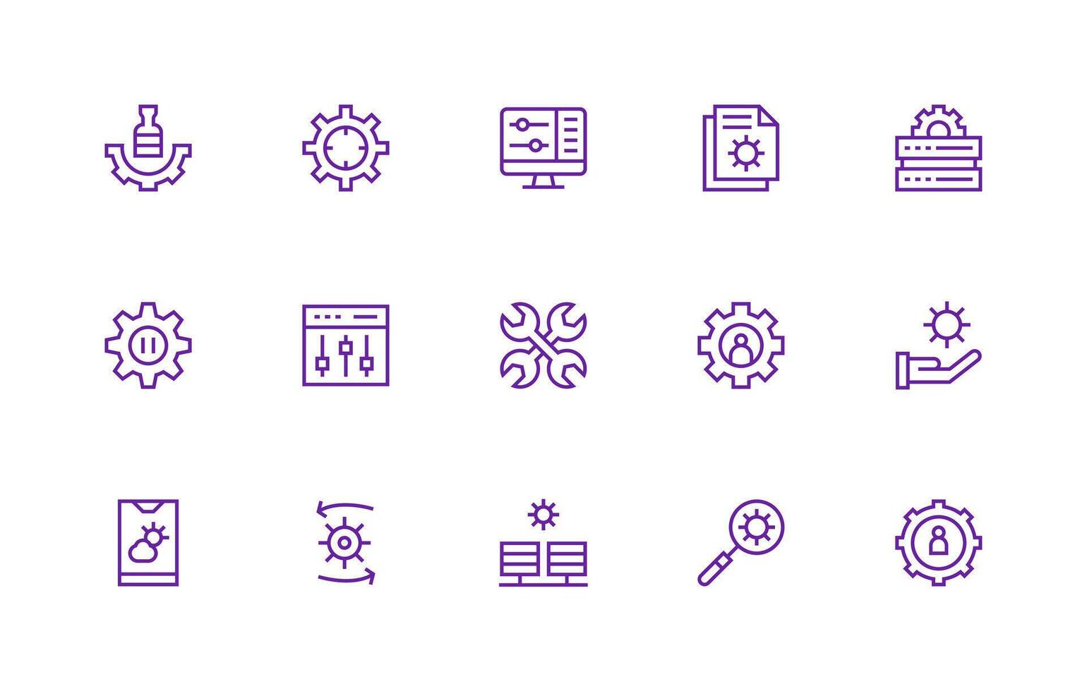 Configuration Icon Set with 15 Regular Line Graphics Basic Icon Series vector
