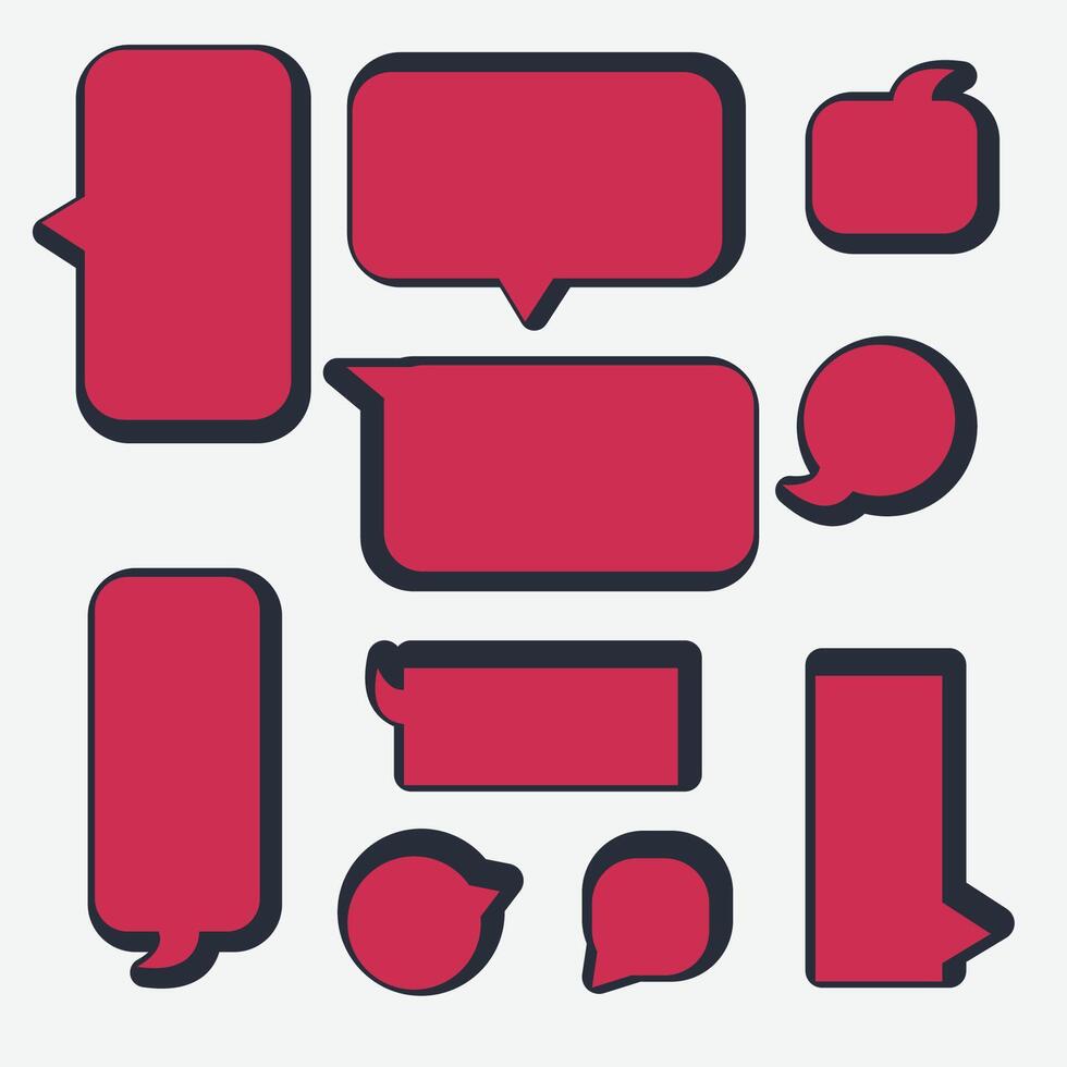 A large set of white speech bubbles with red volumetric shadow in various shapes and sizes. Suitable for comic design, Pro Vector