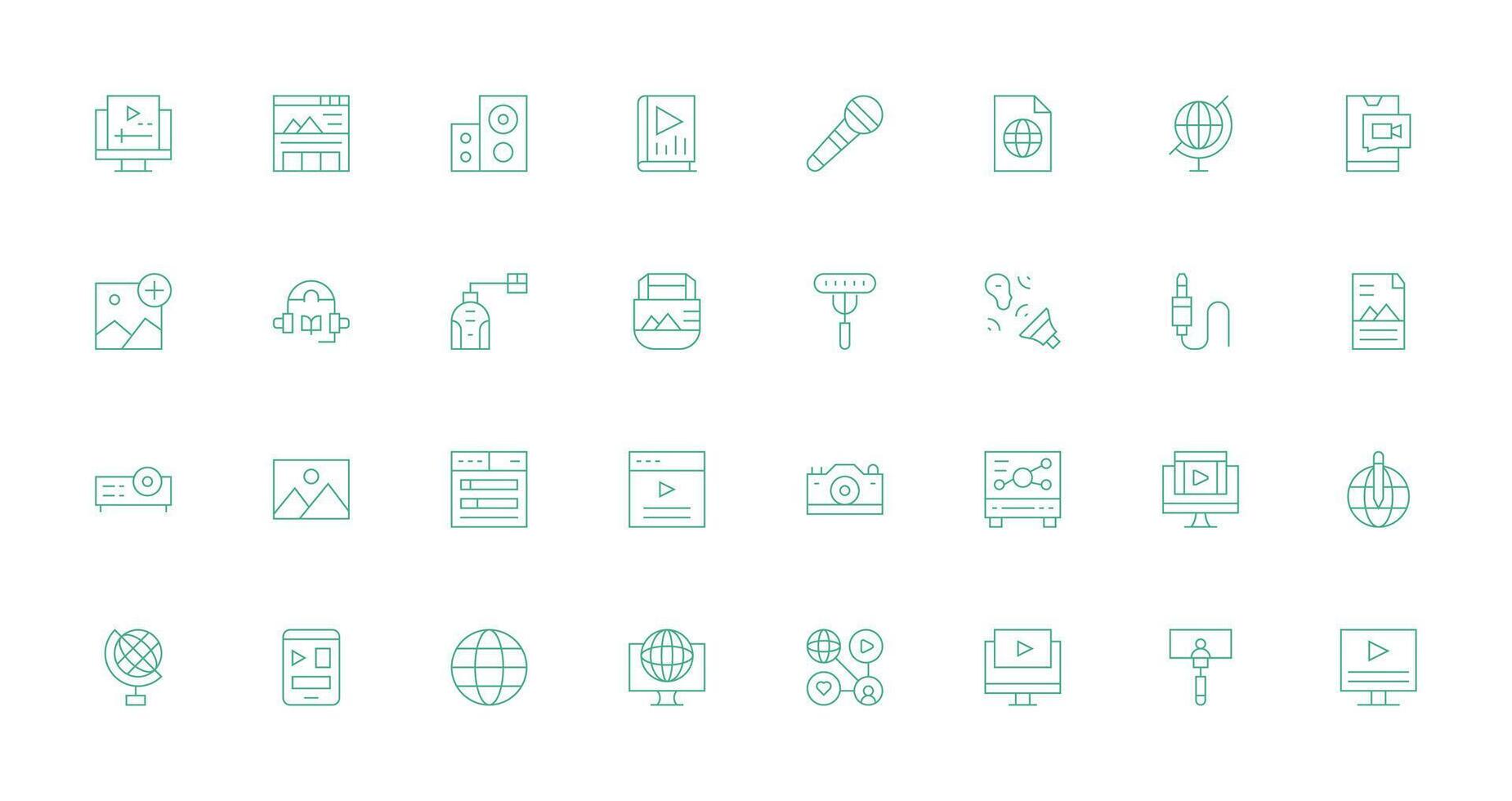Multimedia including 32 Thin Line Illustrations Minimal Icon Set for Interface Projects Free Vector