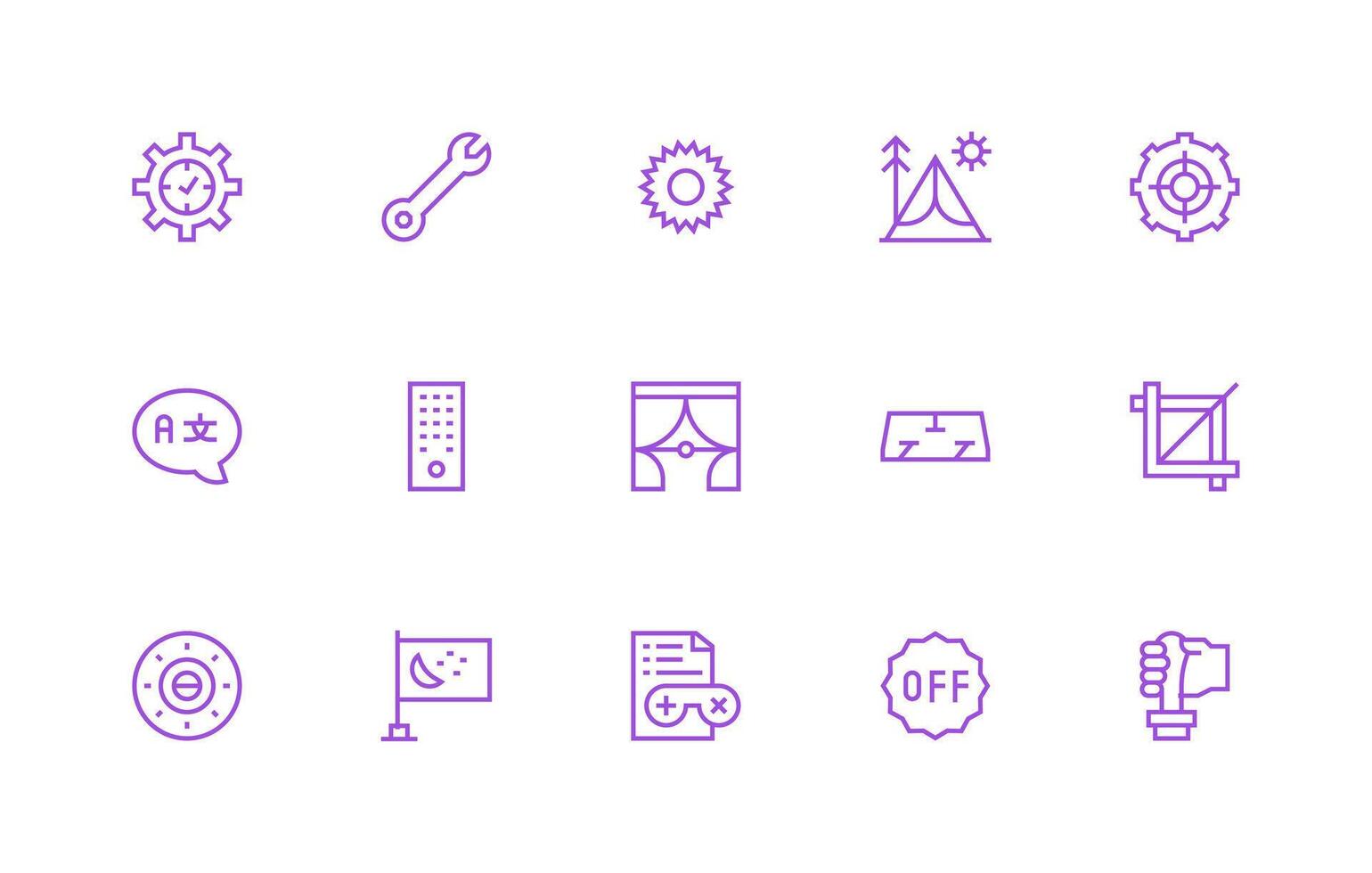 Setting Design Icons featuring 15 in Regular Line Style Neatly Designed Icons for Web Platforms vector