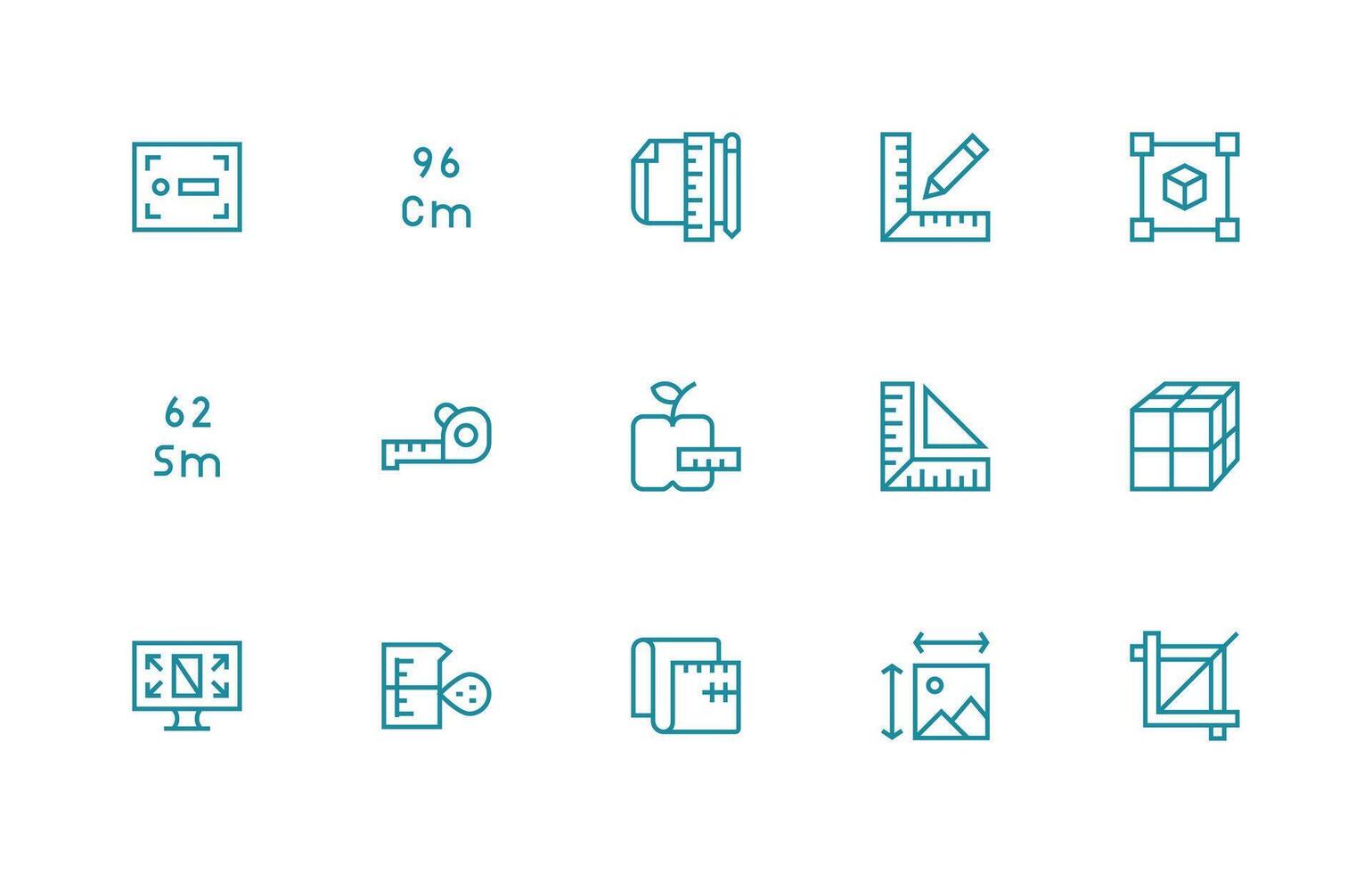 Dimensions Design Icons featuring 15 in Regular Line Style Modern Line and Glyph Icon Series vector