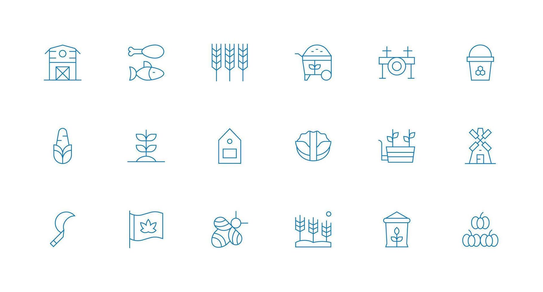18 Icons for Farm in Minimal Line Format Flexible Icon System for Web Interfaces Free Vector