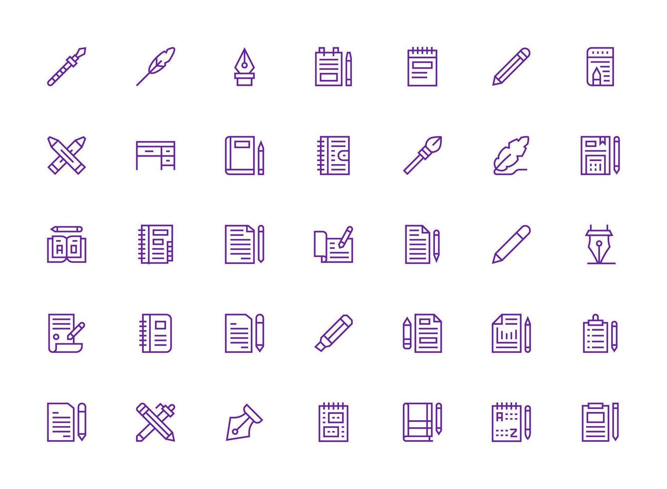 Regular Clean Line Style Writing Icons with 35 Vectors Icon Set for Projects Free Vector