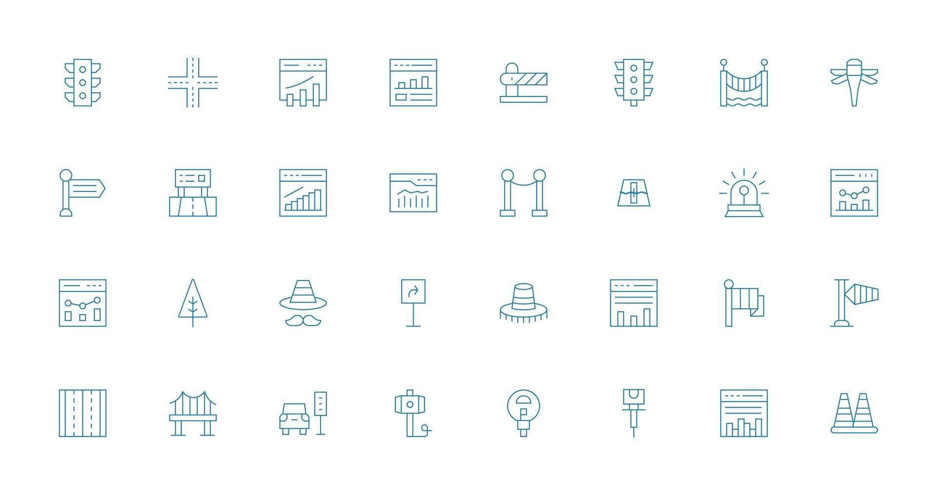 Thin Line Style Traffic Icons with 32 Vectors Scalable Icons for Cross-Platform Interfaces Free Vector