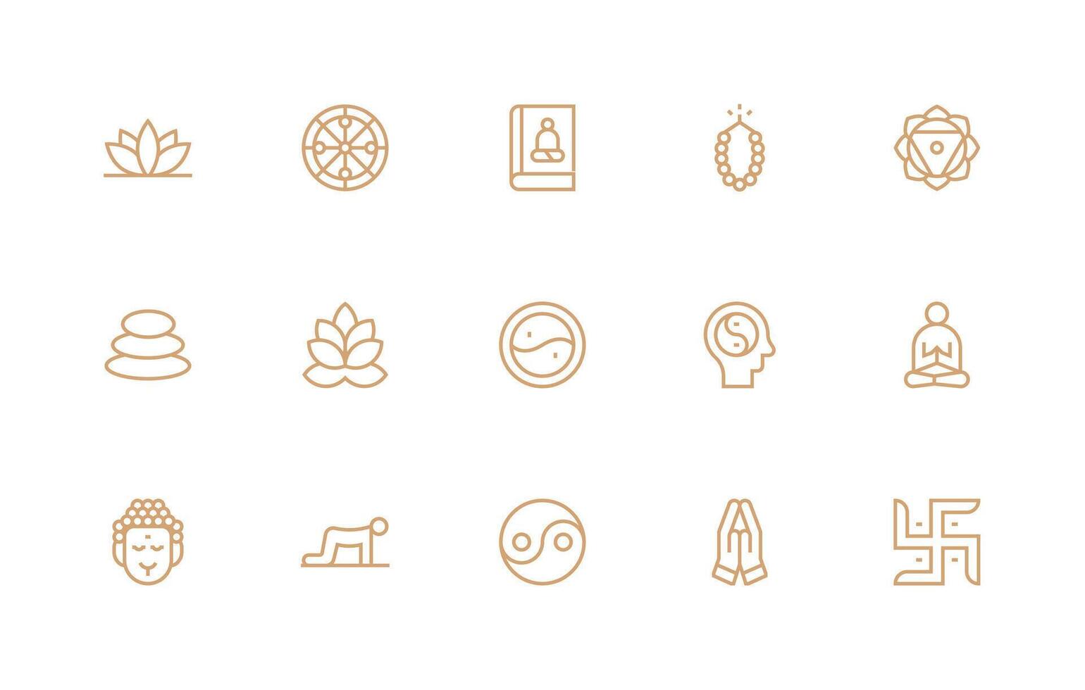 Meditation featuring 15 Icons in Regular Line Design Simple Icons for Interface and Wireframes vector