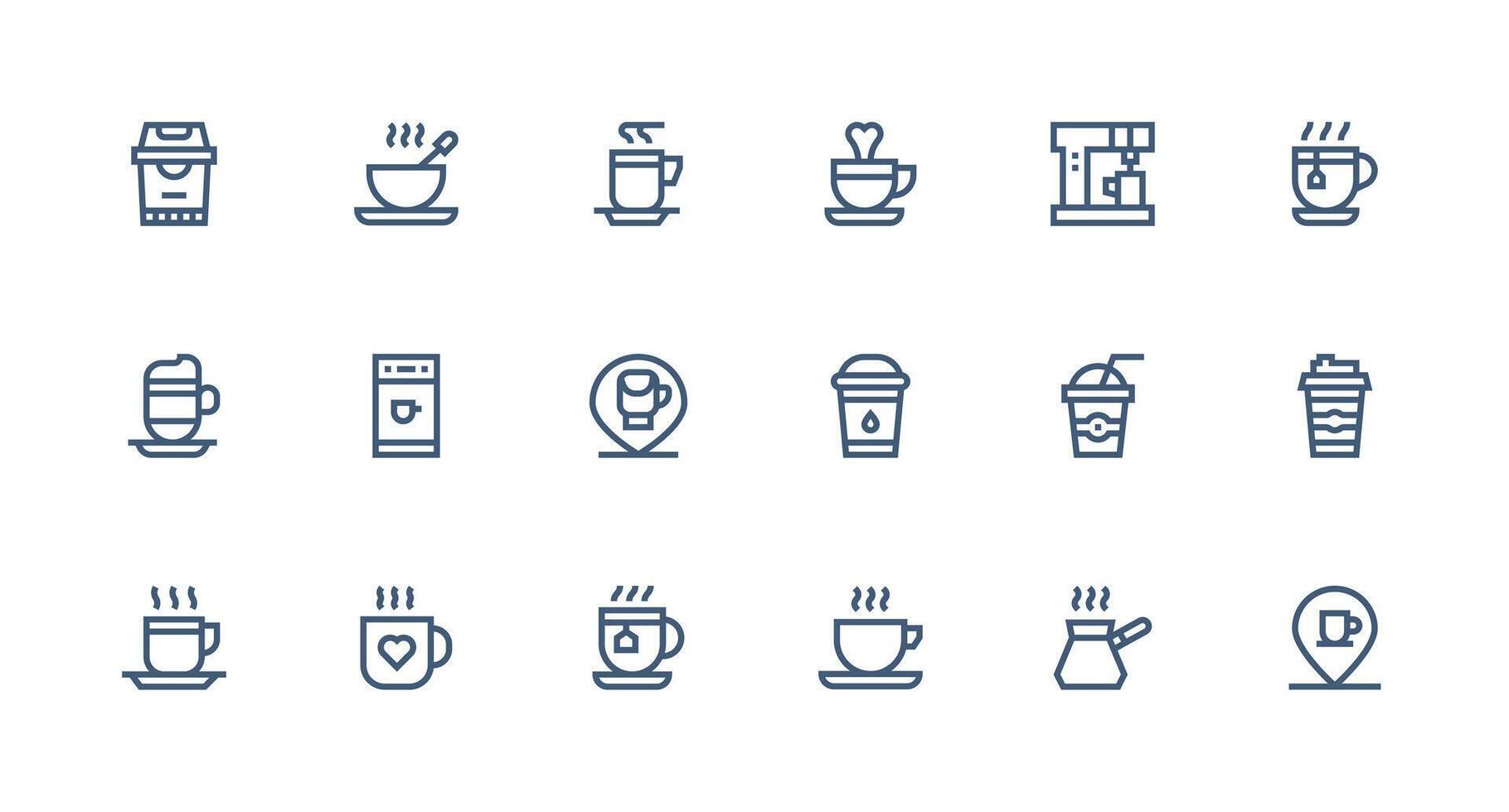 Hot Beverage Icon Set with 18 Strong Stroke Line Graphics Well-Structured Icons for Creative Use Free Vector