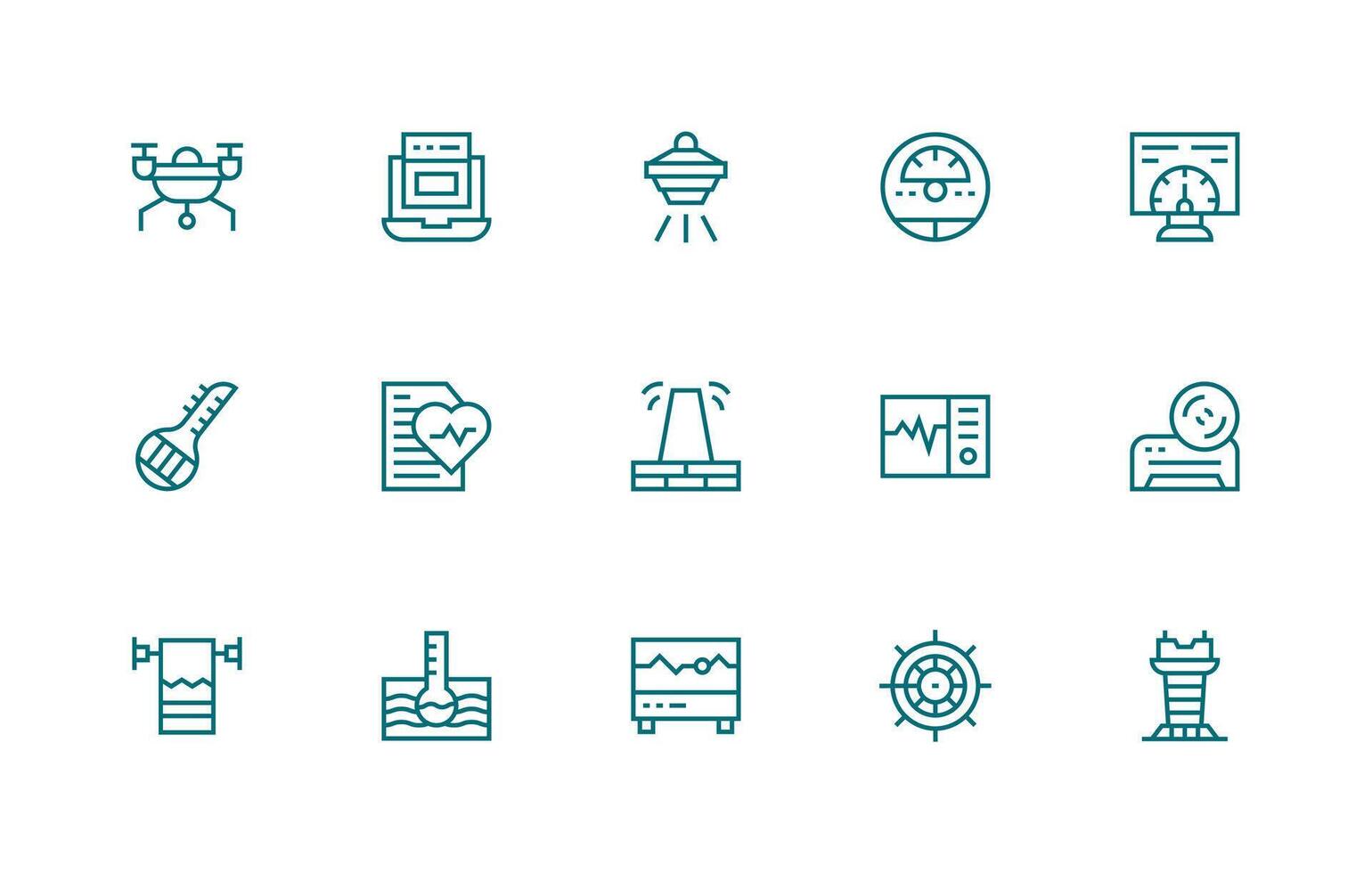 Monitoring Icon Collection with 15 Regular Line Designs Interface Icons for Daily Use Free Vector