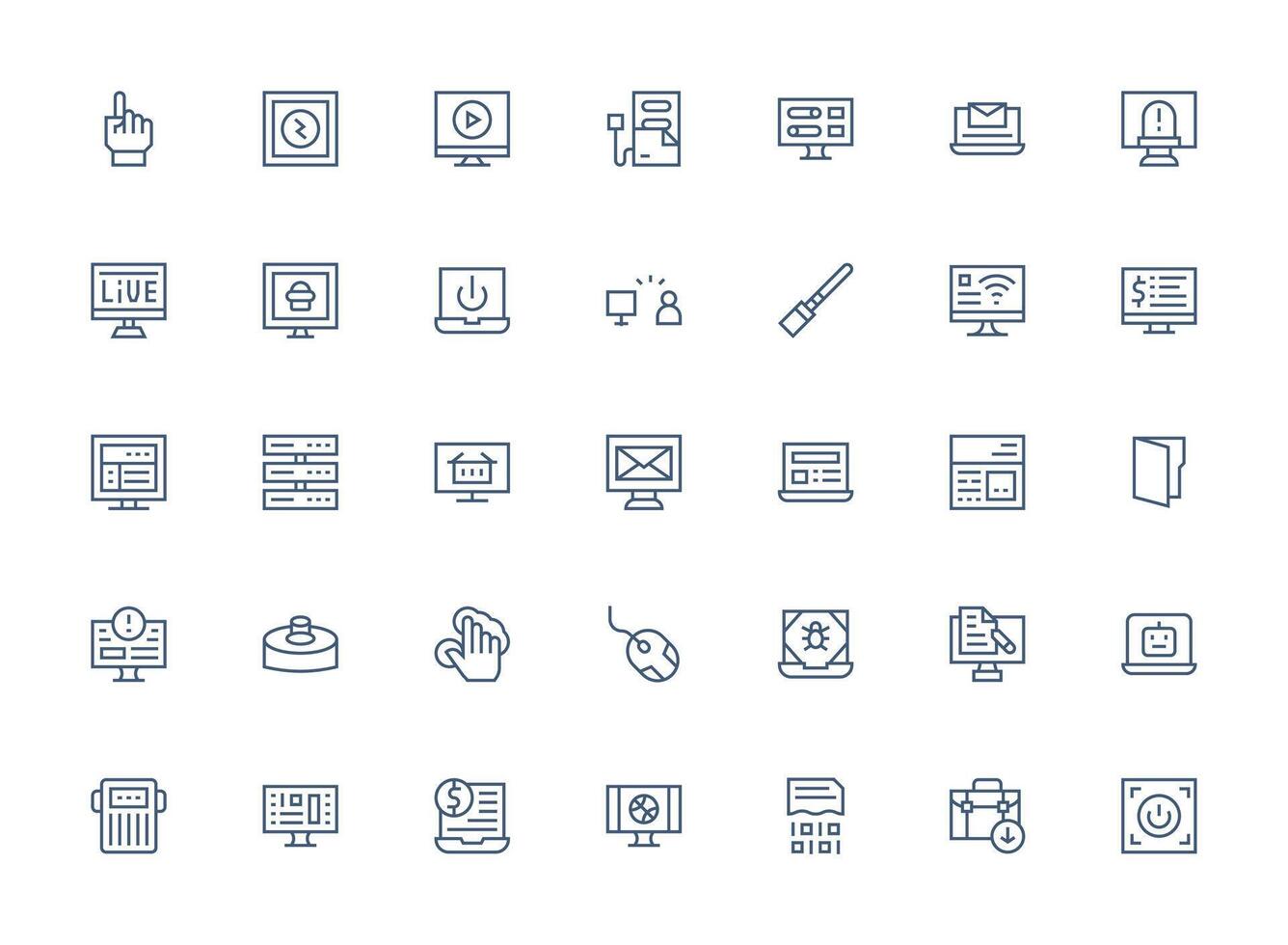 Regular Clean Line Icons from Computer Set with 35 Vectors Creative Icon Set Free Vector