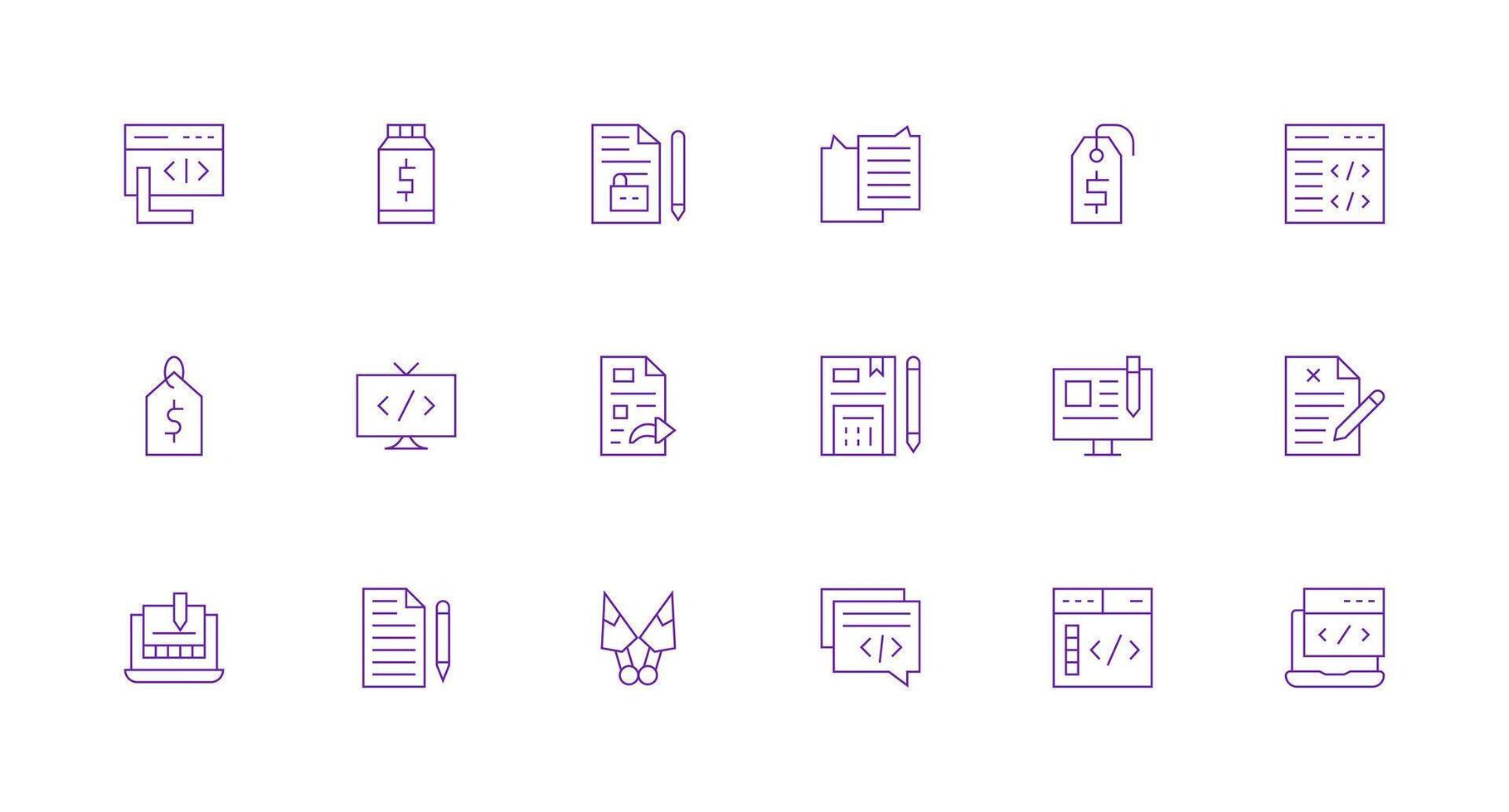18 Icons for Markup in Minimal Line Format Icon Set for Web Free Vector