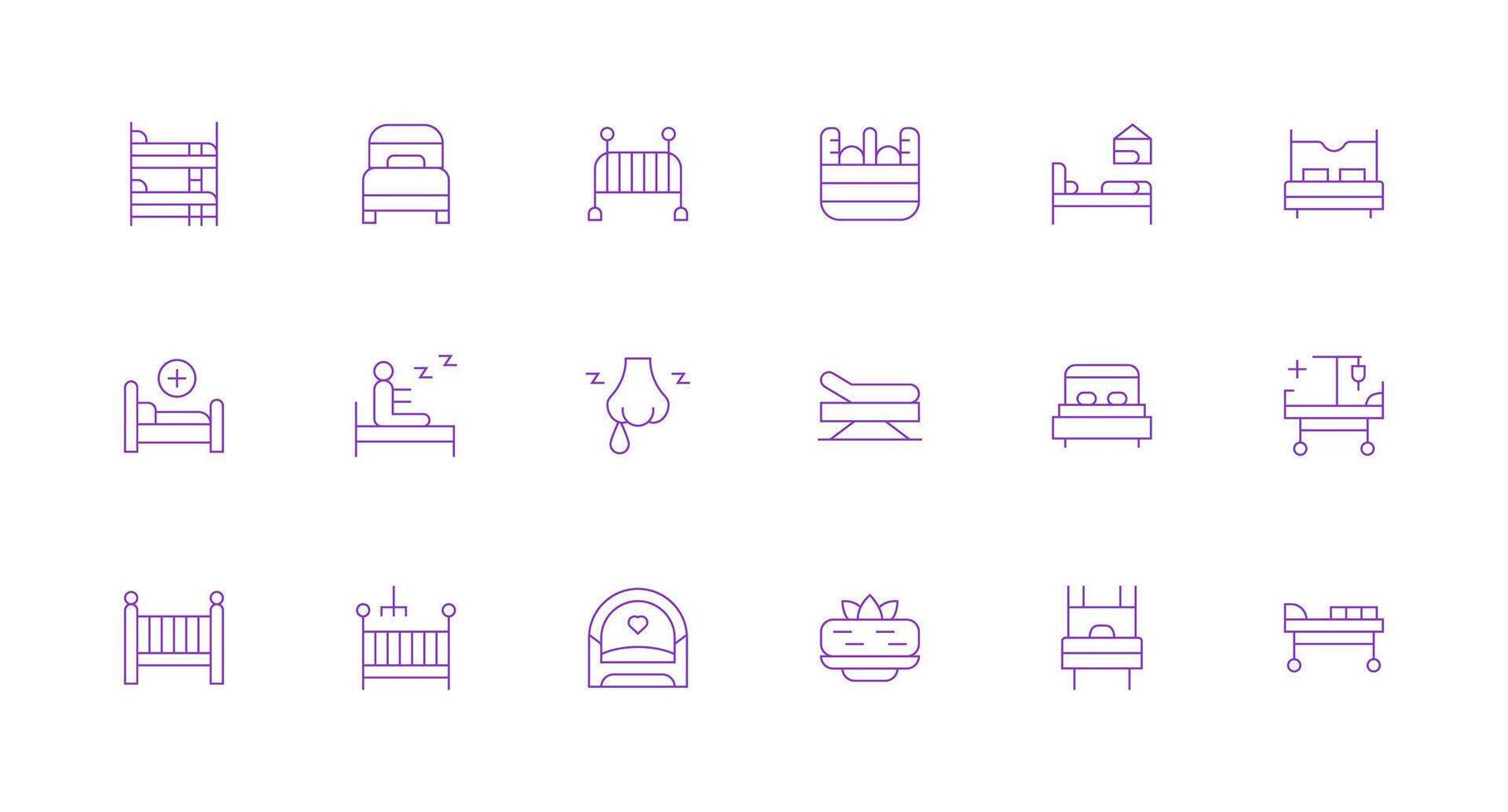 Bed featuring 18 Icons in Minimal Line Design Customizable Icon Series for Mobile Screens Free Vector