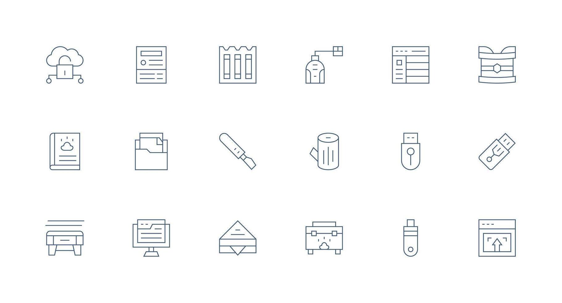 18 Minimal Line Icons for Data Storage Graphics Clear and Concise Icon Set Collection vector