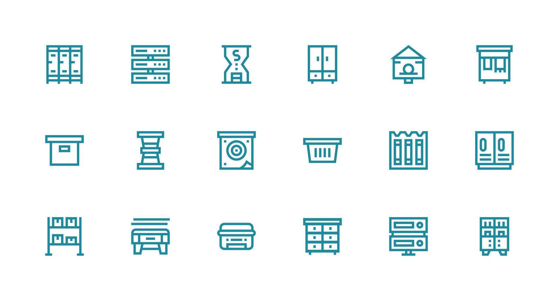 Storage Unit Visual Pack containing 18 Strong Stroke Line Icons Full Icon Library for UI Designers Free Vector