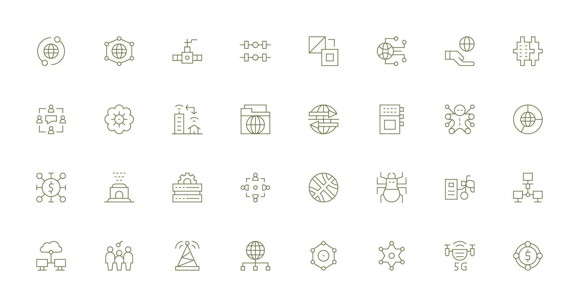 Network featuring 32 Icons in Thin Line Design Fully Editable Icon Set for Web vector