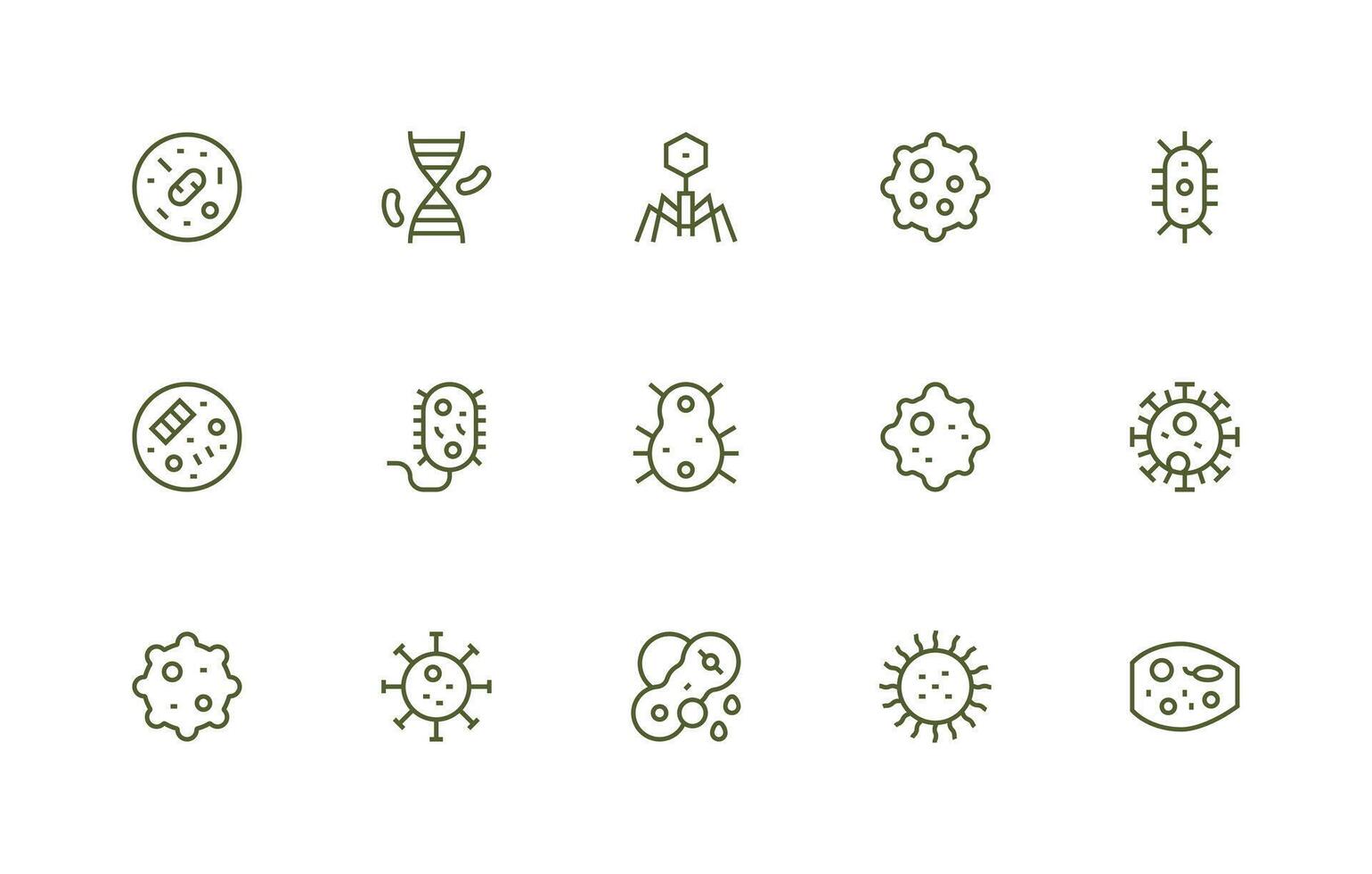 Microbe Icon Set with 15 Regular Line Graphics Editable Icon Collection vector