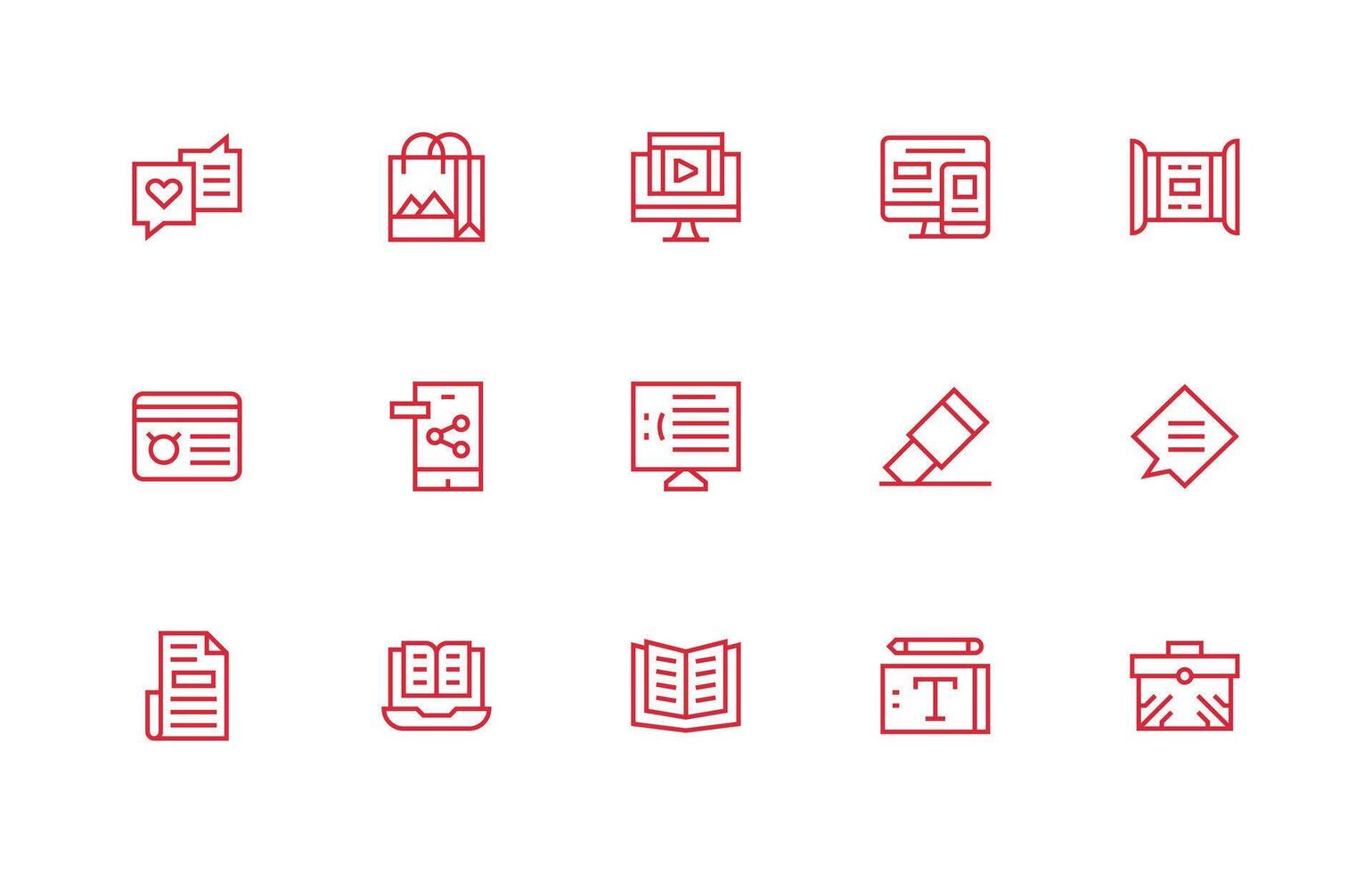 Content Design Icons featuring 15 in Regular Line Style Core Icon Collection for Daily Tasks vector