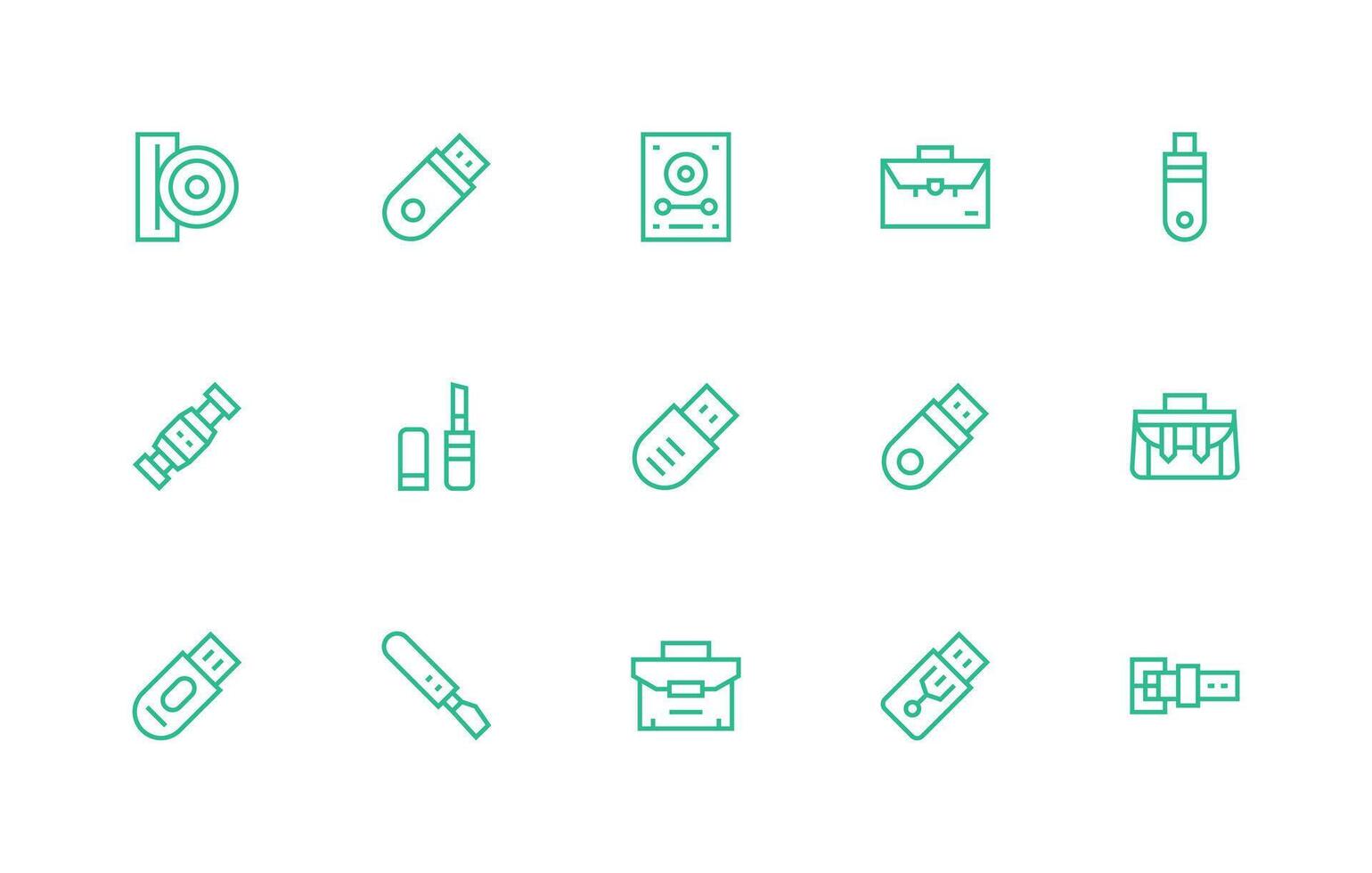Portable Storage Visual Pack containing 15 Regular Line Icons Sharp Icons for Presentations Free Vector